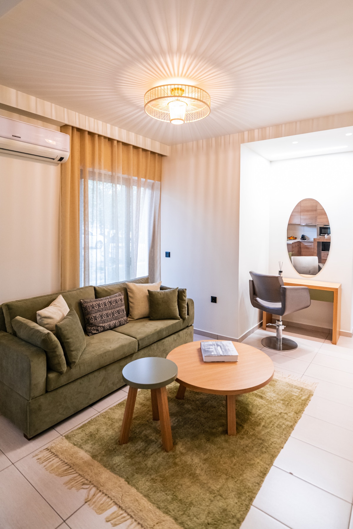 Un departamento encantador cuenta con una cómoda sala de estar, un dormitorio sereno y una cocina totalmente equipada. Relájate en el espacioso baño después de un día de exploración. Con una ubicación ideal, está a poca distancia tanto del centro histórico de Atenas como de hermosas playas. Disfruta de los servicios cercanos:supermercados, cafeterías, panaderías, restaurantes, tiendas y parques. Perfecto para parejas, familias o viajeros. Este departamento combina comodidad,conveniencia y encanto local. ¡Tenemos muchas ganas de hospedarte!