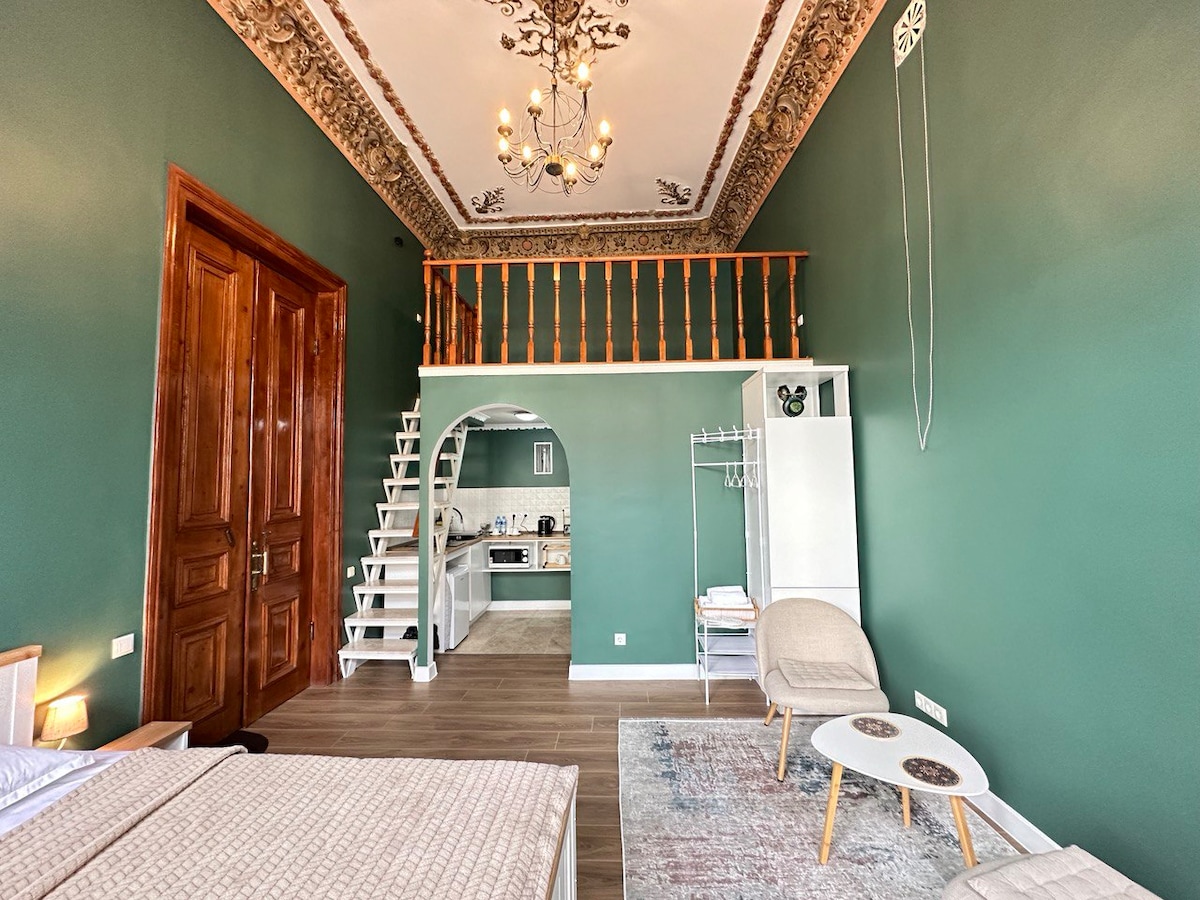 Loft en Borjomi con gran terraza, vista a la montaña.
