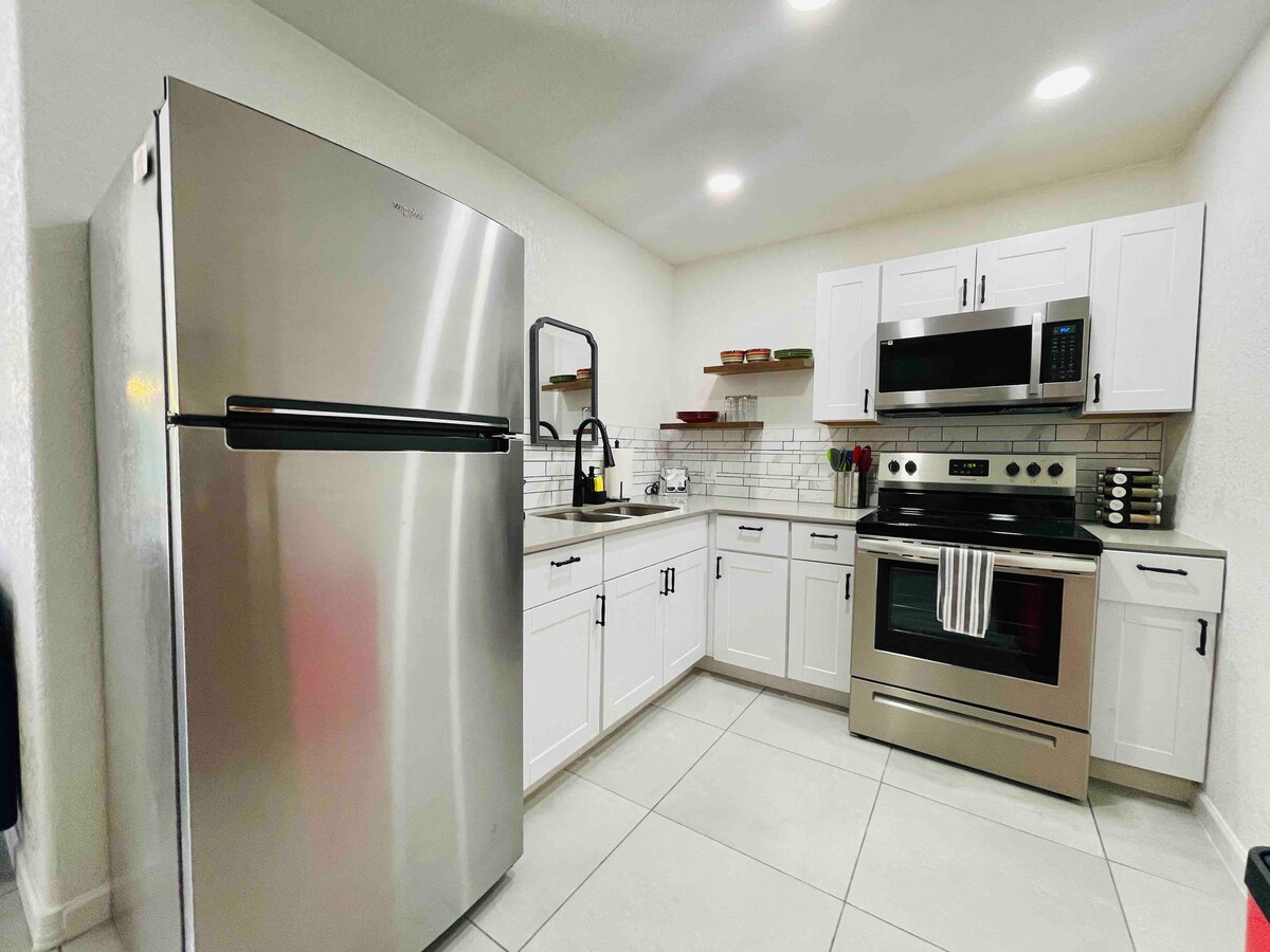 ¡Ubicación central ideal donde la privacidad es importante! Comienza con una plaza de estacionamiento cerca de la puerta de entrada. Entra en una zona vallada y disfruta de toda la sala de estar al aire libre muy bien decorada con una parrilla y comedor. Disfruta de la casa de huéspedes con lo mejor de los muebles y comodidades orientados a los detalles que cuentan con 2 dormitorios, 1 baño, cocina totalmente equipada, sala de estar con una estación de trabajo en casa y un sofá cama. Lavadora/secadora y otros espacios bien hechos para cubrir todas las necesidades personales.