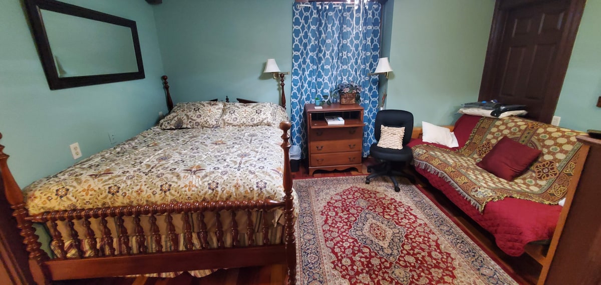 Esta hermosa casa de cuatro dormitorios tiene espacio suficiente para toda la familia, incluidos los bebés peludos. Si estás aquí para las vacaciones o quieres cocinar, tenemos lo que necesitas, todo lo que puedas pedir en la cocina y una parrilla en la parte trasera con sillas, mesas y un lugar para fogatas. ¿Tienes niños? Genial, tenemos literas, una cuna y barreras para bebés si lo solicitas. No te preocupes por perderte tus programas, tenemos televisores inteligentes. ¿Tienes hambre? Echa un vistazo a Mass Ave. Si tienes alguna duda, no dudes en ponerte en contacto.
