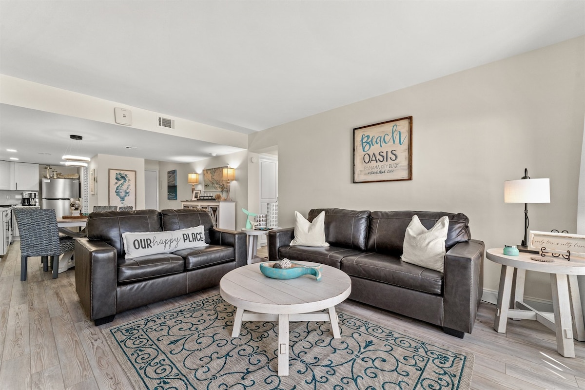 ¡Apartamento de dos dormitorios frente a la playa en Tropic Winds! Cerca de Pier Park, muy familiar. ¡Recién reformado (en 2021) y decorado profesionalmente! La unidad de 2 dormitorios y 2 baños cuenta con 1200 pies cuadrados de hermoso espacio habitable con una cocina actualizada. Televisores en todas las habitaciones. 1 cama tamaño king y 2 camas tamaño queen, ¡muy cómodas! Balcón amueblado extragrande, con impresionantes vistas a las aguas del océano y a la arena blanca más suave de la costa del golfo. ¡El apartamento tiene 2 sillas de playa y sombrilla todos los días para ti hasta el 31 de octubre!