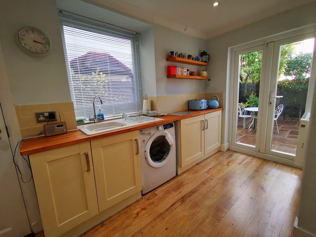 Con vistas a los campos, este lujoso espacio en el piso superior te invita a relajarte. Ultralimpio, tranquilo y muy bien diseñado. Equipado con todo lo necesario y mucho más. Prepara café fresco de grano a taza con la máquina de café Ninja Luxe. Transmite tus programas favoritos en los televisores inteligentes, juega juegos de mesa en grupo o trabaja donde la vista te inspire. Sea cual sea el propósito de tu estancia, trabajar o relajarte, ¡este es el lugar ideal! Londres está cerca, pero se siente como un mundo de distancia. ¡Siempre hay un lugar para estacionar también!