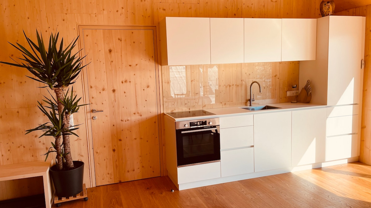 Situado a las afueras de un pueblo de montaña del Tirol, este lugar le ofrece una vista maravillosa y amplia. El apartamento, que combina amorosamente tradición y modernidad, te permitirá calmarte y recargar pilas al instante. Un teleférico cercano le permite practicar todo tipo de deportes de montaña en verano e invierno. Sin embargo, incluso aquellos que simplemente "se queden y se relajen" se sentirán como en casa. WIFI, TV, cajas BT, espacio de estacionamiento están disponibles de forma gratuita; para la sauna tomamos una pequeña feey. La cocina está bien equipada .