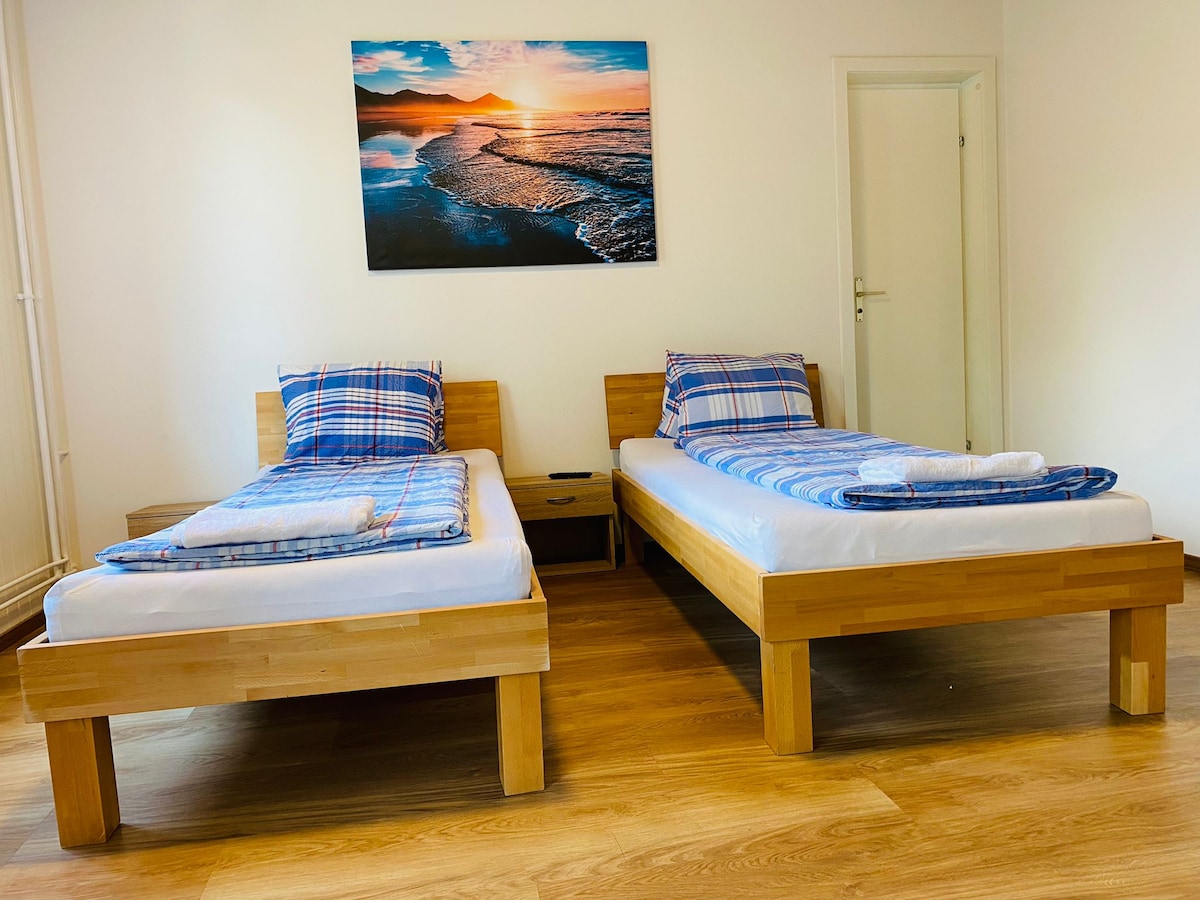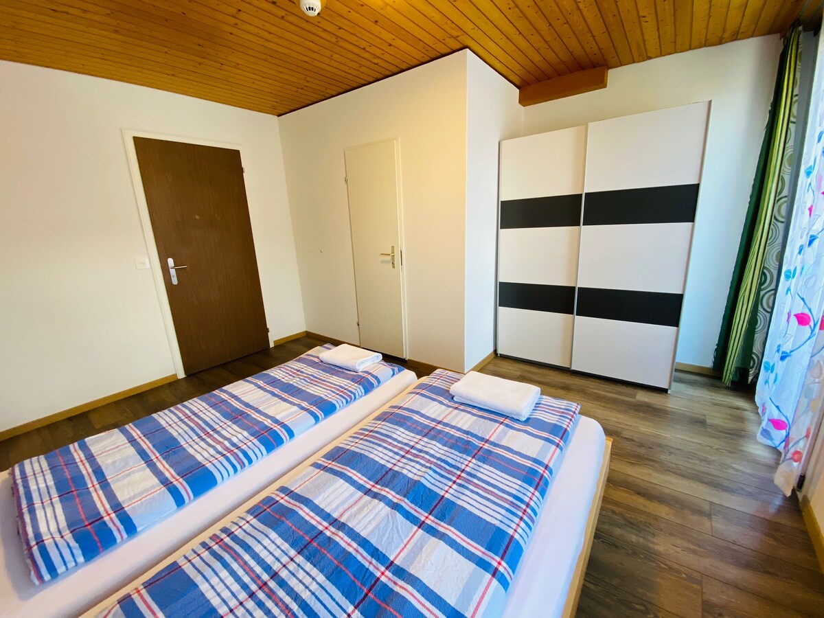 Habitación básica con dos camas individuales y baño privado en Interlaken z2