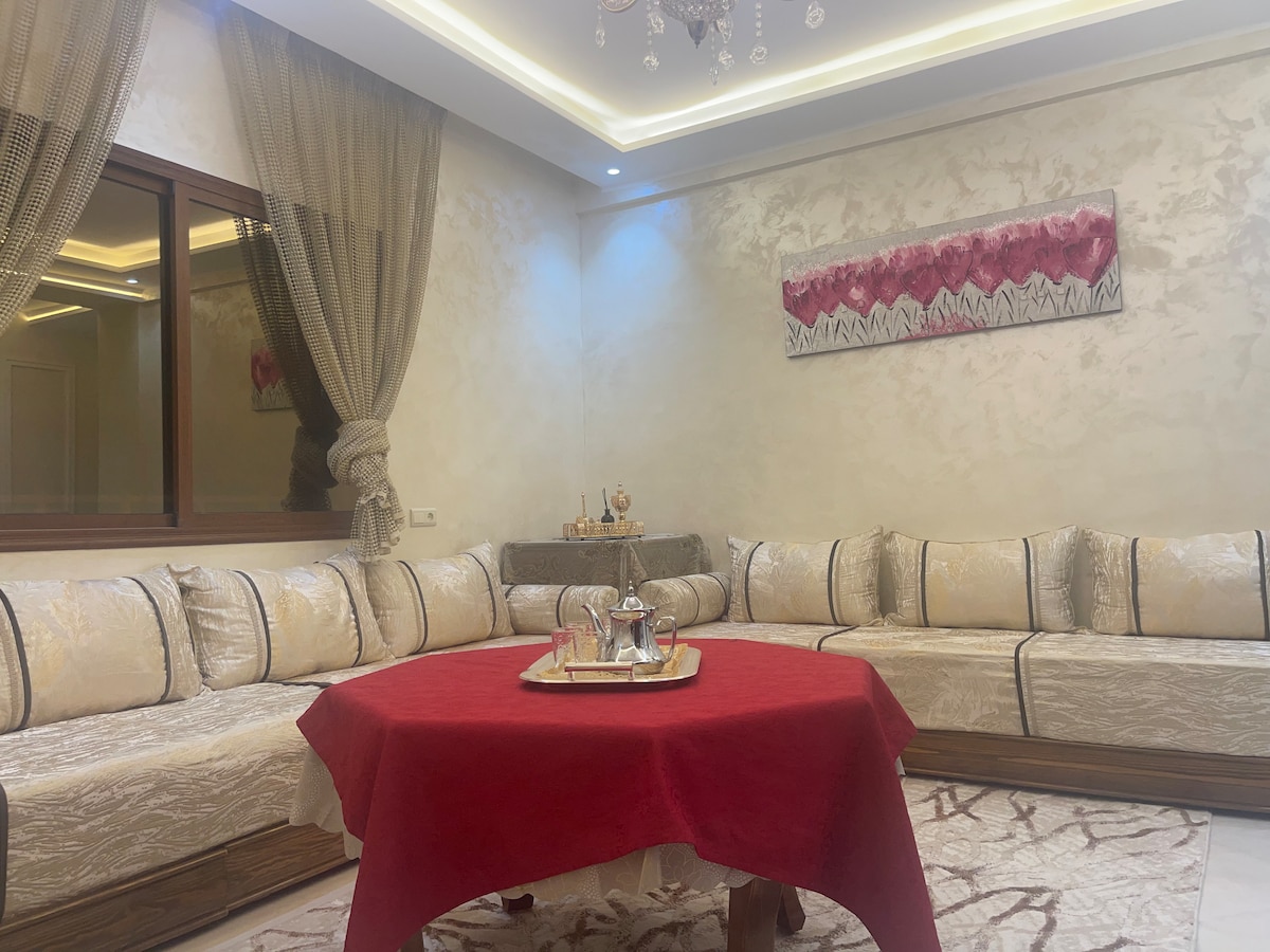 Welcome to our elegant and well-appointed apartment it's the perfect place to call home during your stay. Authentic local apartment in Agadir’s vibrant neighborhood, 4.5km from the beach and 2.5km from Souk El Had. Cozy 2-bedroom with king bed and two single beds. Features an 85-inch smart TV with Netflix, fiber optic Wi-Fi, washing machine, hair dryer, and fresh towels. Fully equipped kitchen and small balcony. Perfect for travelers seeking genuine Moroccan living at great value!