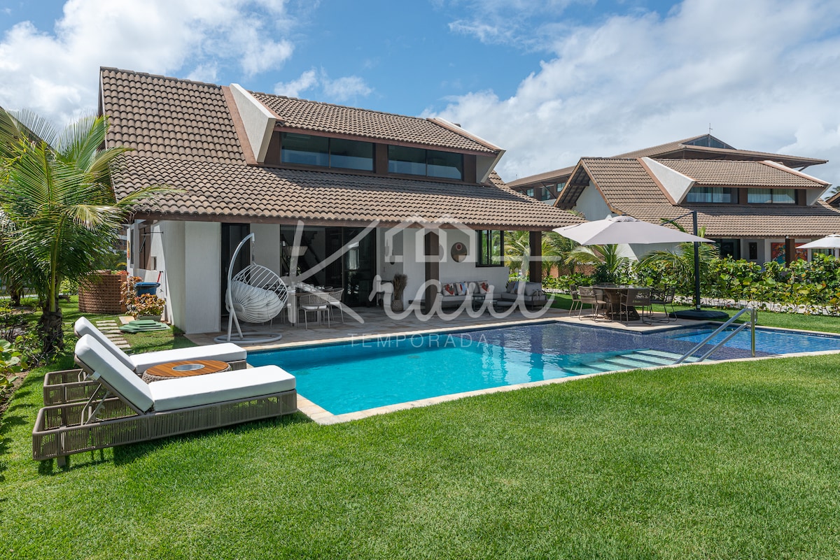 Bangalô completo (condominio Malawi) en la paradisíaca región de Porto de Galinhas, en la playa de Muro Alto. El condominio frente a la playa, la casa está a menos de 2 minutos a pie de la arena de la playa. - 4 dormitorios (3 en suite) + 1 habitación de servicio. - Aire acondicionado de 5 dormitorios. - Piscina privada - Zona gourmet con barbacoa y cervecería. - Espacio para autos. Incluido: - Ropa de cama completa (cama, mesa y baño). Cobramos el consumo de electricidad durante la estadía de R$ 1/kw, medido en la entrada y salida.
