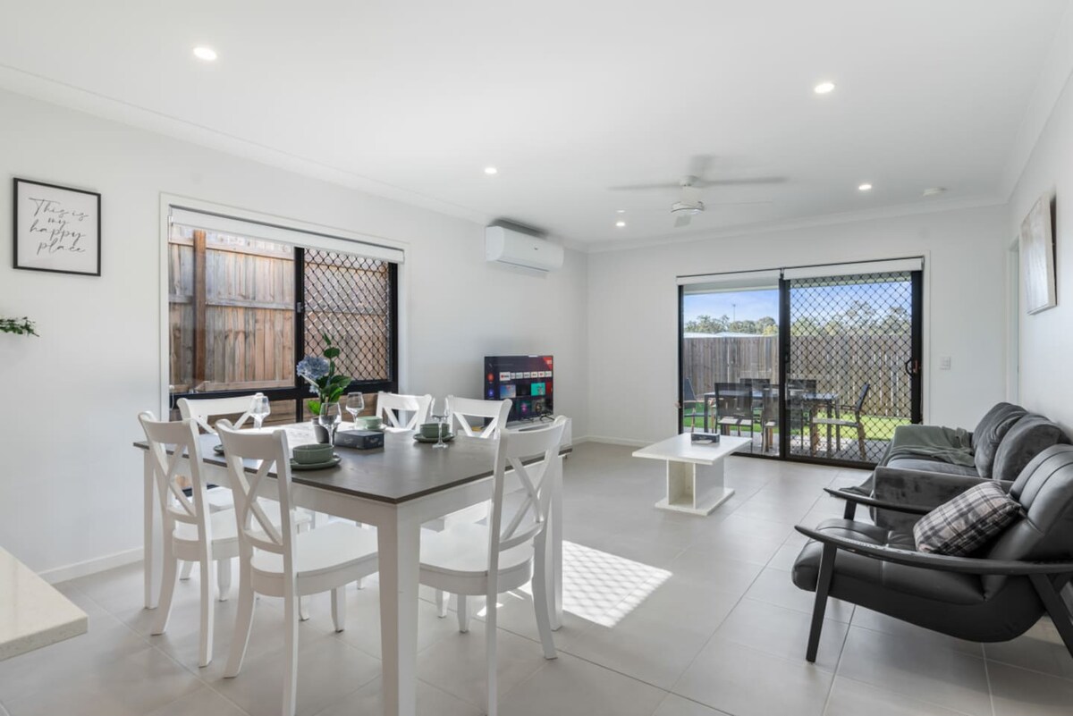 Nuestra casa es una casa de 4 dormitorios, completa con aire acondicionado por conductos en la planta superior, cerca de Willowbank Raceway , aeropuerto de Brisbane a 40 minutos, centro comercial Orion a 20 minutos, 2 salas de estar de tamaño completo, cada una con televisores de pantalla grande y DVD, Como parte de nuestro procedimiento de llegada. La identificación con foto es necesaria antes de la llegada. Los detalles de la llegada son proporcionados.
