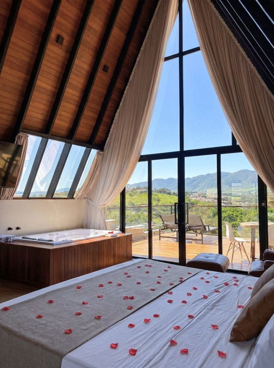 Relájate en este espacio tranquilo y elegante. Experiencia exclusiva entre viñedos y montañas en Caldas (MG)* Imagina despertarte con el fresco aroma de la naturaleza, rodeado de viñedos, montañas y silencio. Este exclusivo chalet se encuentra en la bodega Estrada Real, en el sur de Minas Gerais, a *1200 metros de altitud*, en la imponente *Serra da Mantiqueira*, en un complejo enogastronómico de alta gama, donde cada detalle ha sido diseñado para proporcionar una experiencia auténtica, elegante e inolvidable.