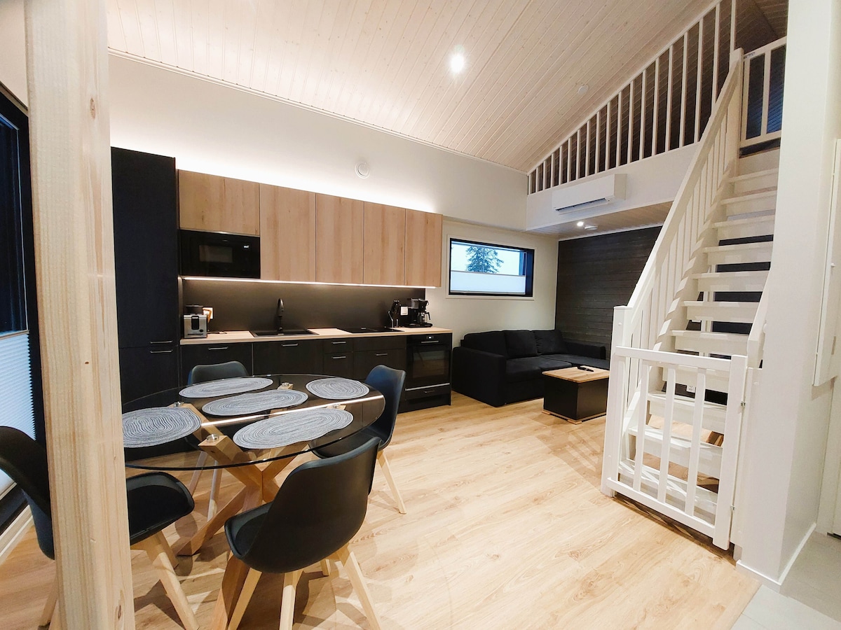 ¡Acogedora cabaña adosada en el corazón de Syöte! La cabaña tiene dos dormitorios y un espacioso loft con cinco camas y un espacio de trabajo, perfecto para familias, grupos o trabajadores remotos. Las pistas de esquí pasan justo al lado de la cabaña, y puedes caminar hasta las pistas de Iso-Syöte y todos los servicios. ¡Disfruta del esquí, el senderismo o la relajación en la tranquila naturaleza de Laponia! Rovaniemi, hogar de Papá Noel, está a solo 160 km y es fácil de visitar para una excursión de un día inolvidable. ¡Ropa de cama y toallas disponibles (25 €/persona)!