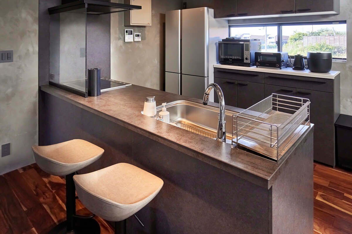 La sala de estar 40 tatami Mat tiene vistas al Océano Pacífico frente a tus ojos.Un espacio extraordinario donde podrás disfrutar cocinando con tus amigos mientras escuchas el sonido de las olas, utilizando los últimos utensilios de cocina como un Bermycula y un Valmyuda, y horneando pizzas en una pizzera.La mansión de 120 metros cuadrados está totalmente equipada con calefacción por suelo radiante, por lo que puedes disfrutar de un momento de relajación incluso en invierno. También hay un baño al aire libre, para que puedas disfrutar de un momento de relajación por la noche con una vista completa de las estrellas con el sonido de las olas. Además, hay un sinfín de posibilidades para playas privadas, nadar y tomar el sol a 3 segundos a pie. El sistema de sonido también está equipado con el equipo atento del propietario, disfruta de una fiesta con todos.(Las reservas son para un mínimo de seis personas). ¡La sauna abrió sus puertas en septiembre de 2023!(La sauna es de 5000 yenes por noche para todos los que la usan por noche). Reserva mínima de 6 personas.