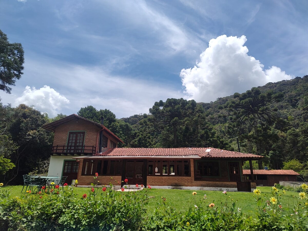 Con 1750 de altitud, nuestro sitio está en la cima de una montaña con vistas espectaculares, a uno de los picos más bellos de la región, que es Pedra Grande. Relájese en este espacio tranquilo y elegante, una casa de campo típica. Nuestro sitio es para los amantes de la naturaleza, ¡perfecto para recargar energías y relajarse! Con vistas a las montañas y el bosque, la casa está rodeada de árboles, lo que hace que el ambiente sea tranquilo, relajante y hermoso.