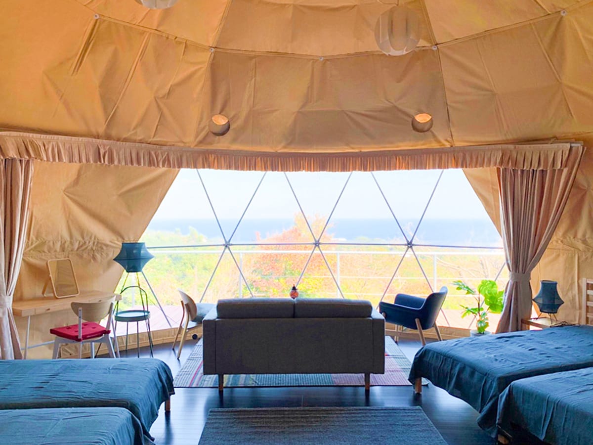 [Para 2 personas] Tienda de campaña con cúpula de 7 m con vistas a la bahía de Sagami (con ducha y baño) Regular con barbacoa y desayuno