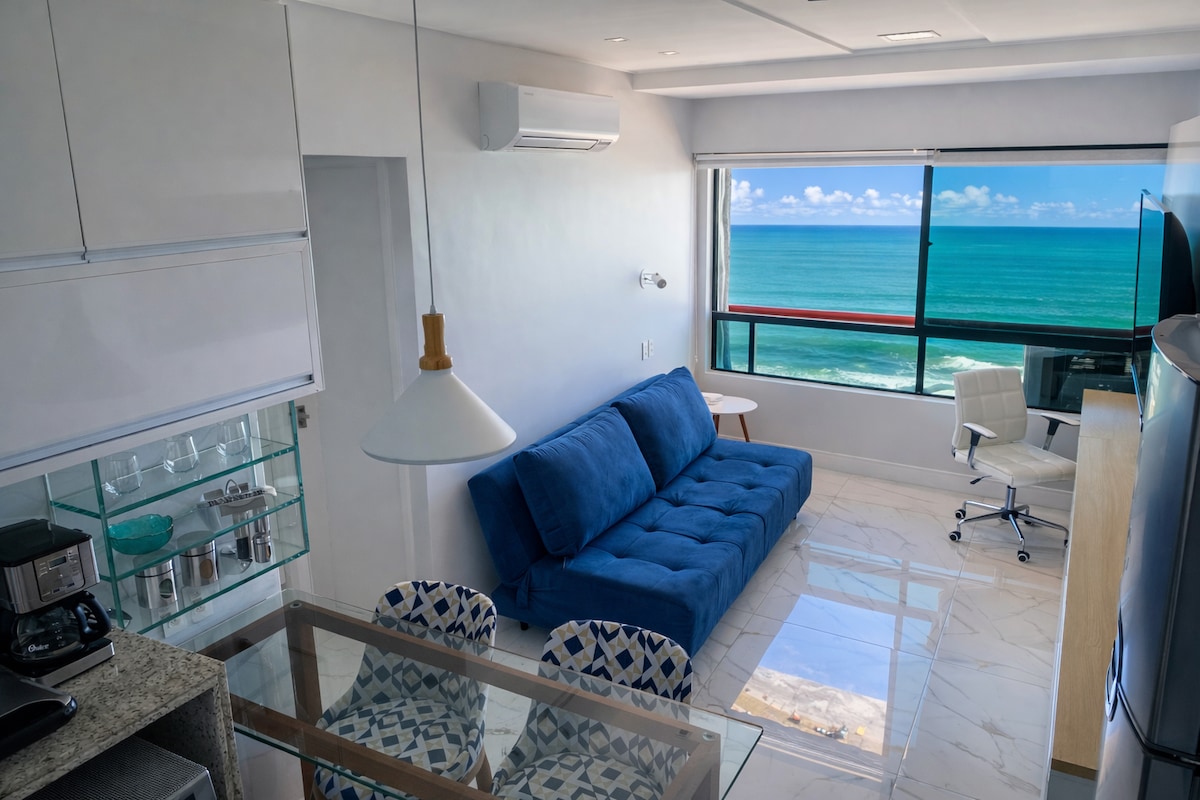 El apartamento está en una excelente ubicación de Boa Viagem, dormitorio y sala de estar, con cama doble y sofá cama, placa de cocina 2 bocas y microondas, 2 aire acondicionado (Split), 2 Smart TV, wifi, armario, espejo, mesa de trabajo, mesa de comedor, utensilios y utensilios de cocina, camas y partes de baño. Amueblado, espacio de garaje (Confirmar al momento de hacer la reservación), muebles planificados, sala de fitness. Cerca de Shopping Recife (10 min caminando), la playa (10 min caminando) y frente a Big Good Price (Supermercado con servicios públicos)