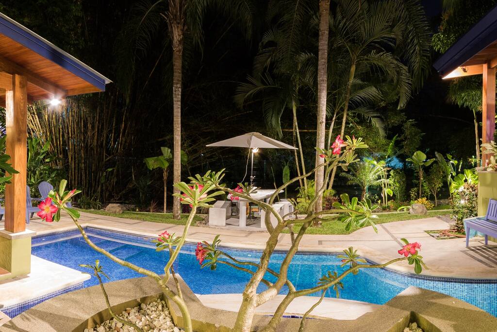Casa del árbol única de inspiración balinesa con vistas a un río de temporada, un jardín de mariposas y un huerto de frutas tropicales. Construida con madera de origen local que en su mayoría se molió en la propiedad y se complementó con recuerdos y detalles de madera tallada recogidos mientras exploraba Indonesia y Tailandia. Este es un paraíso para los observadores de aves con visitas diarias de guacamayos escarlata, loros y tucanes. Ubicado a poca distancia en auto desde surf de clase mundial, restaurantes frente al mar y vida nocturna en Playa Hermosa y Playa Jaco.