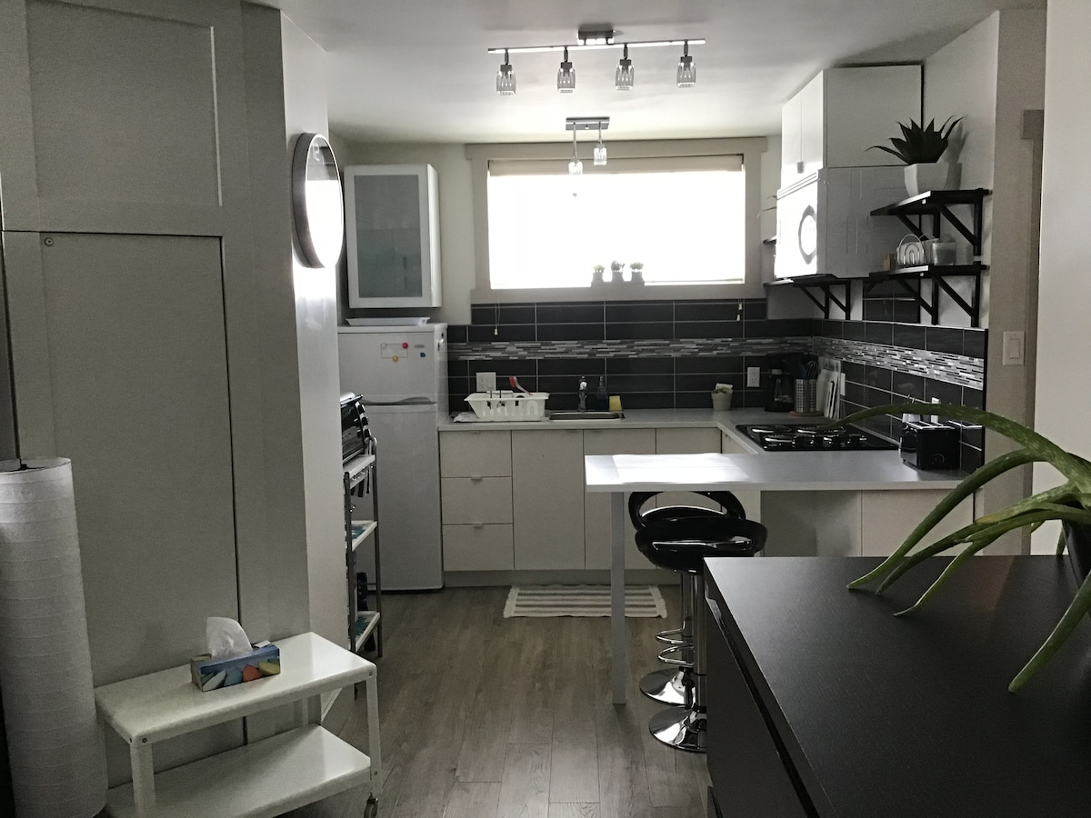 ***PROMOCIÓN febrero 2025 Alquile 3 noches consecutivas y le reembolsaremos el 10% del importe total de su reserva.*** Impresionante apartamento de soltero de 300 pies cuadrados íntimo y totalmente amueblado cerca de todos los servicios. Suelos radiantes, ducha de cerámica con chorros de masaje, cafetera Kurig, ropa de cama y cocina independiente. Placas de inducción y Air Fryer. Wifi y Smart TV. «Bell Tele Fibe» disponible. Restaurantes, tiendas de comestibles, tiendas de conveniencia, carriles bici cercanos.