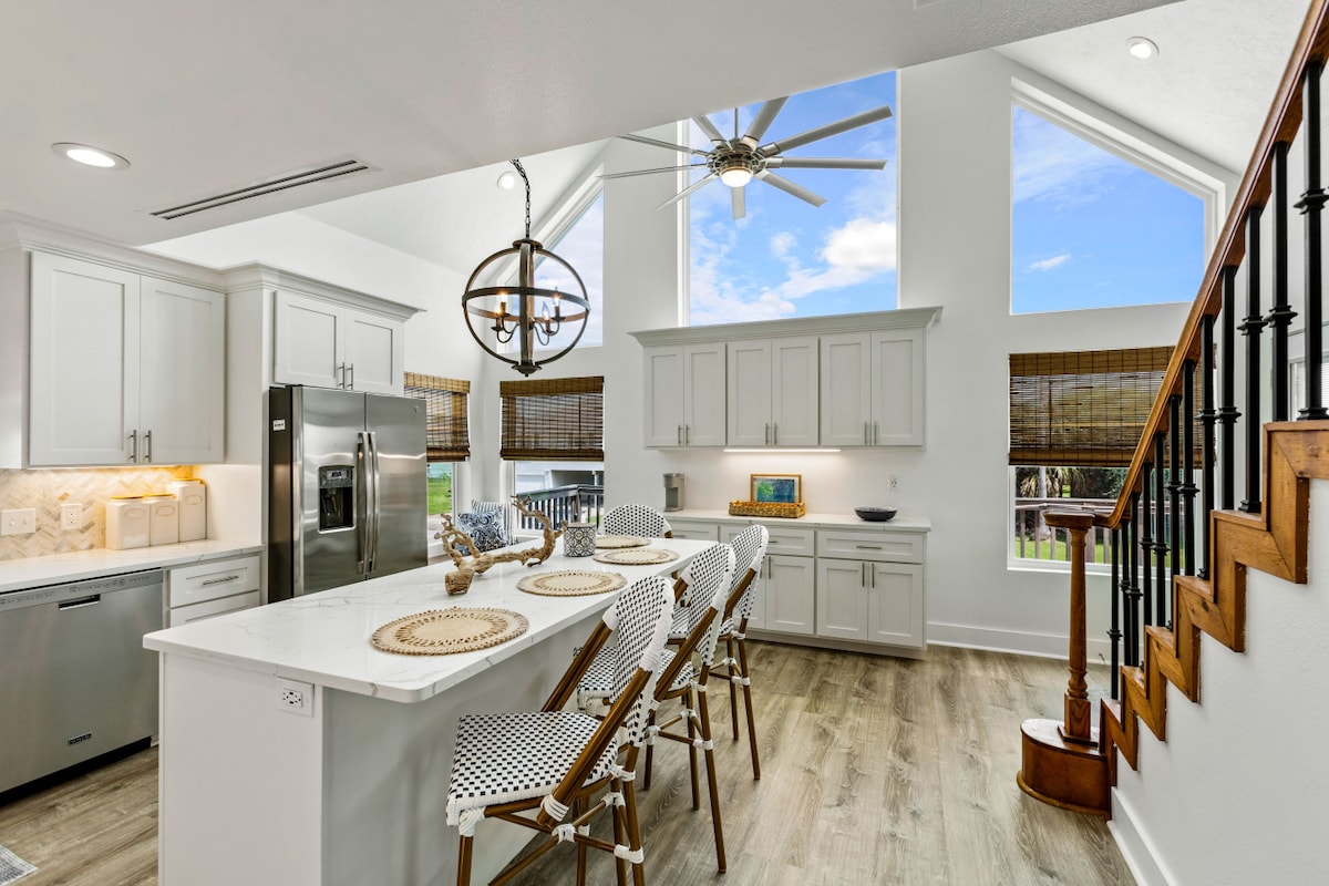 ¿Buscas una casa de playa moderna y exquisitamente decorada donde puedas pescar/hacer kayak junto al porche trasero y disfrutar de amaneceres/puestas de sol desde varias terrazas privadas? ¡Ya lo encontraste! Te damos la bienvenida a la villa Waterfront de Agua Vista. Nuestra hermosa casa moderna cuenta con 3 dormitorios arriba + 4to dormitorio adicional abajo +2,5 baños con amplio espacio de estar/cocina, televisores inteligentes en cada habitación, ping-pong, kayaks proporcionados para ti, pesca (con luces subacuáticas), sombra, juegos, jacuzzi para 8 personas, ventiladores en todos los porches y muchos juguetes de playa.