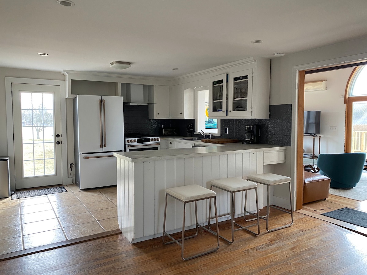 Escápate a este moderno refugio de granja en North Fork Wine Country. Disfruta de una estancia lujosa con una cocina totalmente surtida, una acogedora chimenea, amplios dormitorios y baños inspirados en el spa. Relájate en un entorno tranquilo cerca de granjas, playas, recolección de calabazas y manzanas, Tanger Outlets, parque acuático Splish Splash y las mejores bodegas. Comedor al aire libre, fogata privada, vistas panorámicas y rutas de senderismo cercanas lo hacen perfecto para familias, parejas o amigos.