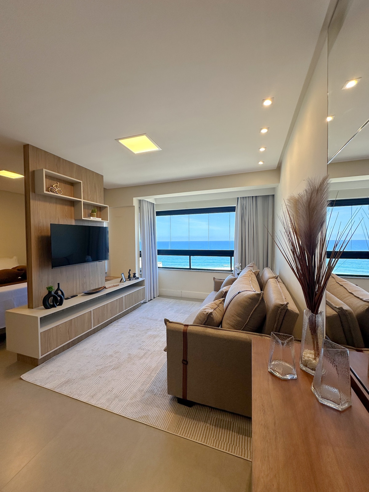 ¡Relájate! ¡Departamento tranquilo! ¡Acogedor! ¡Aire acondicionado! ¡Sonido del mar, pájaros cantando al amanecer! ¡Vista privilegiada! ¡Estacionamiento privado! Piso recientemente renovado: - 2 baños, suite con aire acondicionado. - Cafetera, microondas, parrilla, lavadora... - Habitación con aire acondicionado, TV inteligente, sofá cama, mesa... - Ventilador de aire acondicionado, internet de alta velocidad a la oficina en casa. _Floor flat Restaurants Bakery Beauty salon... - ¡Bicicleta Itaú ,divans masaje kiosk front flat !
