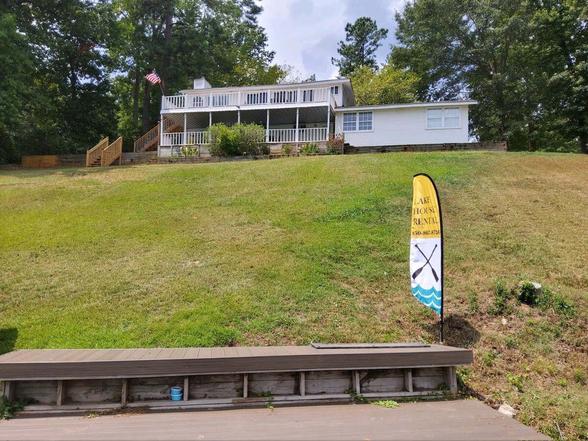 Amplia casa de 4 dormitorios, 3,5 baños, justo en el agua del lago Jackson, a unos 20 minutos en auto de Monticello, Covington y Jackson, GA, ¡conocido por Vampire Diaries y Stranger Things! Nada, pesca, esquí, kayak o simplemente relájate en la terraza, el muelle o el patio y disfruta de la vista del lago. Rampa para barcos ubicada a menos de una milla de la propiedad. La casa cuenta con un muelle para nadar y un muelle para la conexión de barcos durante toda la estadía. 10% de descuento para alquileres semanales. No se permite fumar, vapear ni se admiten mascotas.