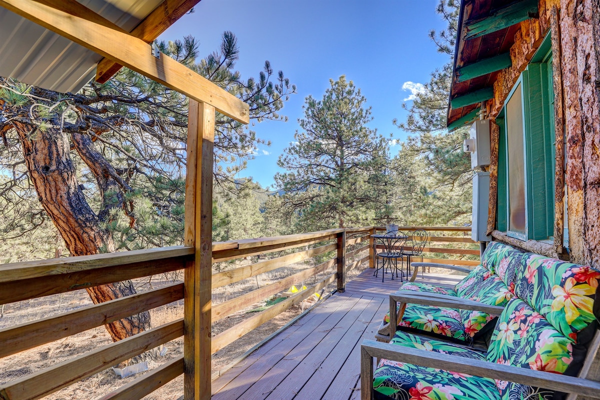 Cabaña de una habitación, ubicada a una altitud de 9000', con cocina y baño 3/4. Estamos cerca del parque estatal Golden Gate Canyon, donde puedes hacer raquetas de nieve, senderismo, ciclismo de montaña y mucho más. A 35 minutos de Boulder, a 30 minutos de Golden, a 30 minutos de los casinos de Black Hawk, a 60 minutos del aeropuerto internacional de Denver. 3 restaurantes, una licorería, cafetería y tienda de comestibles cerca. Este anuncio se publicita como no apto para mascotas en consideración a las personas que sufren de alergias graves. Gracias por tu comprensión en este asunto delicado.