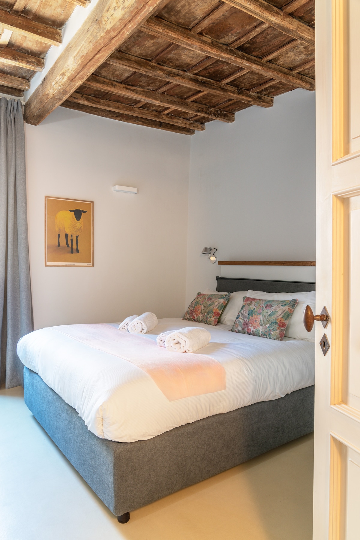 En el corazón de la histórica Roma, cerca del Portico d'Ottavia y la Piazza Venezia, el loft se encuentra en un antiguo establo renovado perteneciente a un palacio del siglo XV (Palazzo Lovatelli). El loft ha sido rediseñado por un arquitecto y a menudo es la residencia de artistas que han contribuido a las obras de arte en el loft y que trabajan para la cercana galería de arte callejero, Galleria Varsi. Es perfecto para una familia de cuatro personas o para una pareja que desee un entorno romántico para su estancia en Roma.