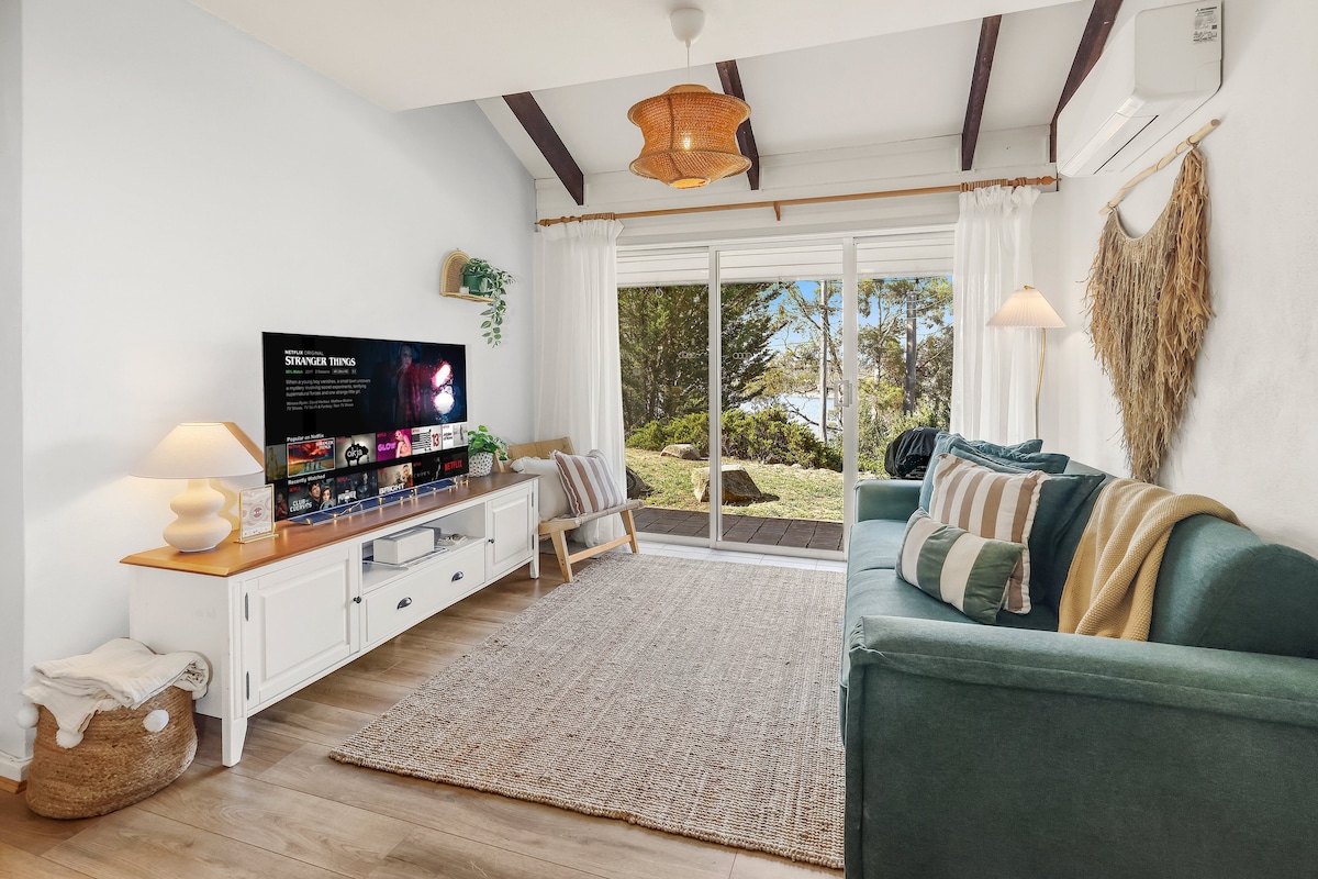 Nuestro apartamento de planta abierta en Jindabyne es un lugar maravilloso para que tus familiares y amigos se relajen y disfruten de las vistas del lago Jindabyne. ¡Rodeado de matorrales naturales a solo 1 minuto en auto del centro de la ciudad! Los resorts están a solo 30 minutos. Un apartamento de un dormitorio bellamente renovado. Con muebles nuevos en todas partes y este apartamento cuenta con un dormitorio principal con una cama tamaño queen y armario bellamente decorados, y un gran sofá cama doble extraíble y almacenamiento seguro para bicicletas de montaña bajo petición.