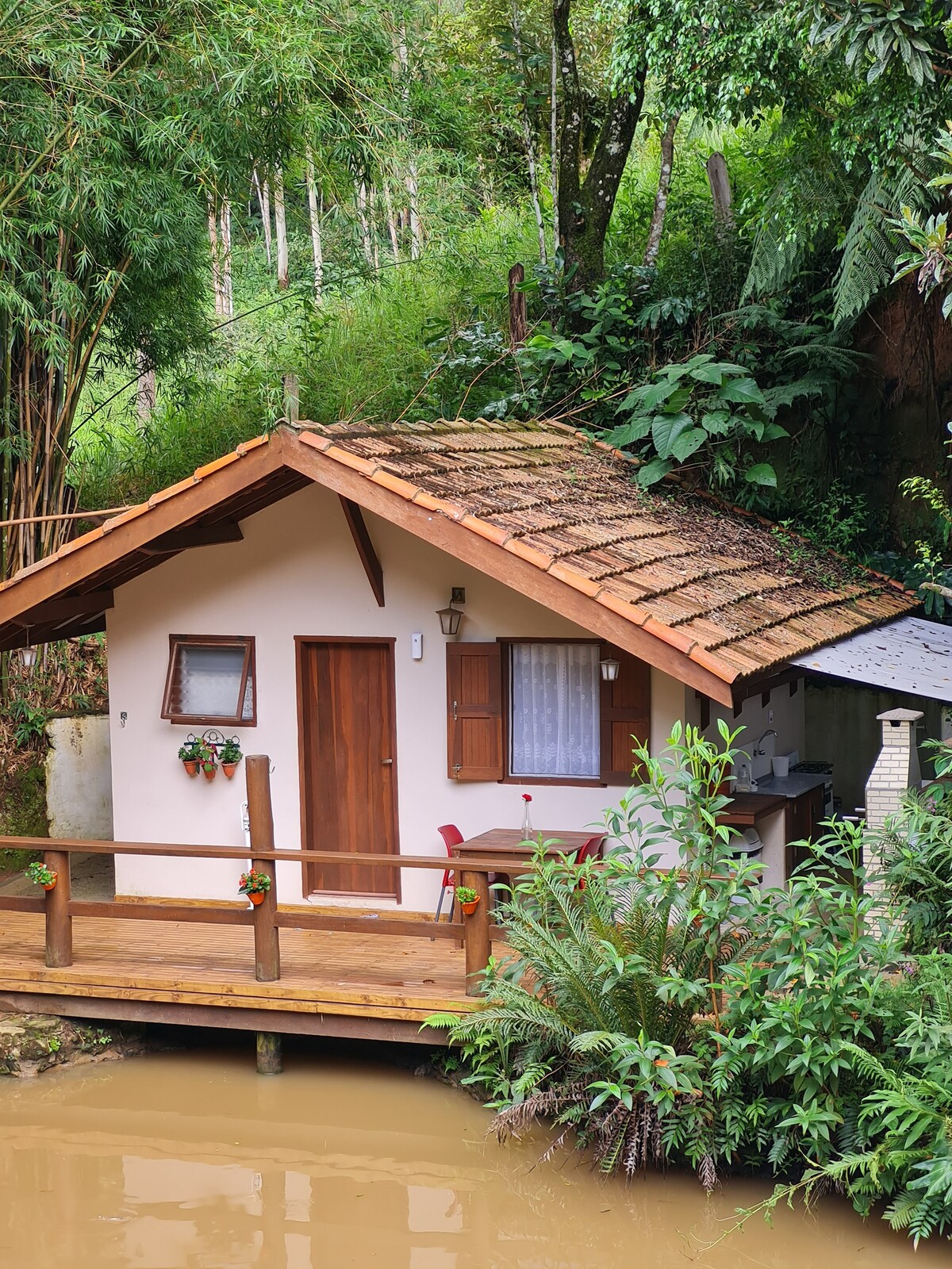Chalé Bamboo es + un puntito positivo dentro de la propiedad Sítio Pinheiro donde yo Donizeti nací y me crié con mi familia viví hasta los 34 años (hoy vivo en Atibaia) Mônica llegó aquí en 2014 cuando nos conocimos, Chalé Bamboo fue construido ladrillo a ladrillo por nuestras manos con mucho amor, cariño y ganas de hospedar cada vez mejor, aquí solemos llamarlo paraíso todo muy sencillo y alrededor todo con la decoración que viene de Dios los hermosos tonos de verdes y paz!