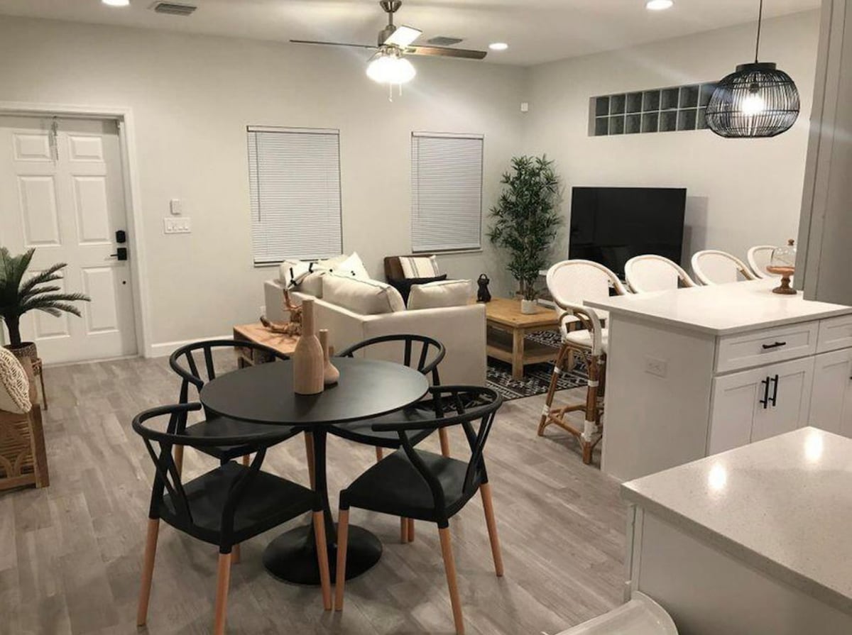 Te damos la bienvenida a tu alojamiento de 2 dormitorios, donde la comodidad y la funcionalidad se unen. Relájate en dos cómodas camas tamaño king, mantente productivo en el escritorio motorizado con monitor de computadora o desconéctate con un televisor de 75 pulgadas y una acogedora hamaca. Disfruta de una conexión a Internet ultrarrápida de 1 Gbps y de la tranquilidad que ofrecen las ventanas resistentes a los impactos. La cocina, el patio privado y dos plazas de aparcamiento exclusivas se suman a la comodidad de tu estancia. Los restaurantes, las tiendas y la playa están a poca distancia en coche. Con una salida al mediodía, ¡tu escapada relajante te espera!