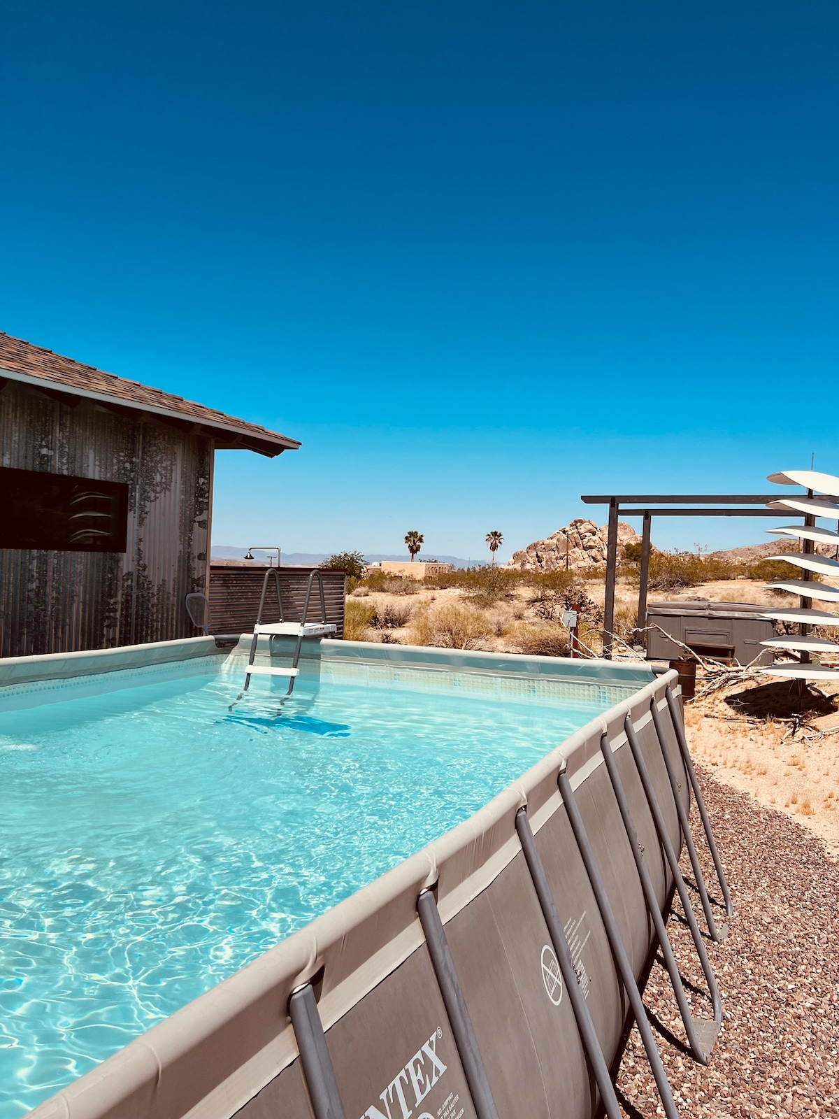 Infinite Horizon is a romantic pool property in the Joshua Tree Desert surrounded by boulders and expansive views. Located in Yucca Valley, the "sister-city" of Joshua Tree. You're close enough to explore all the area has to offer, but can retreat back to your private oasis to relax. Expect complete privacy and the best views the area has to offer. Feels like you're on another planet! Perfect for a romantic getaway or small group trip; this property is sure to impress the harshest of critics!