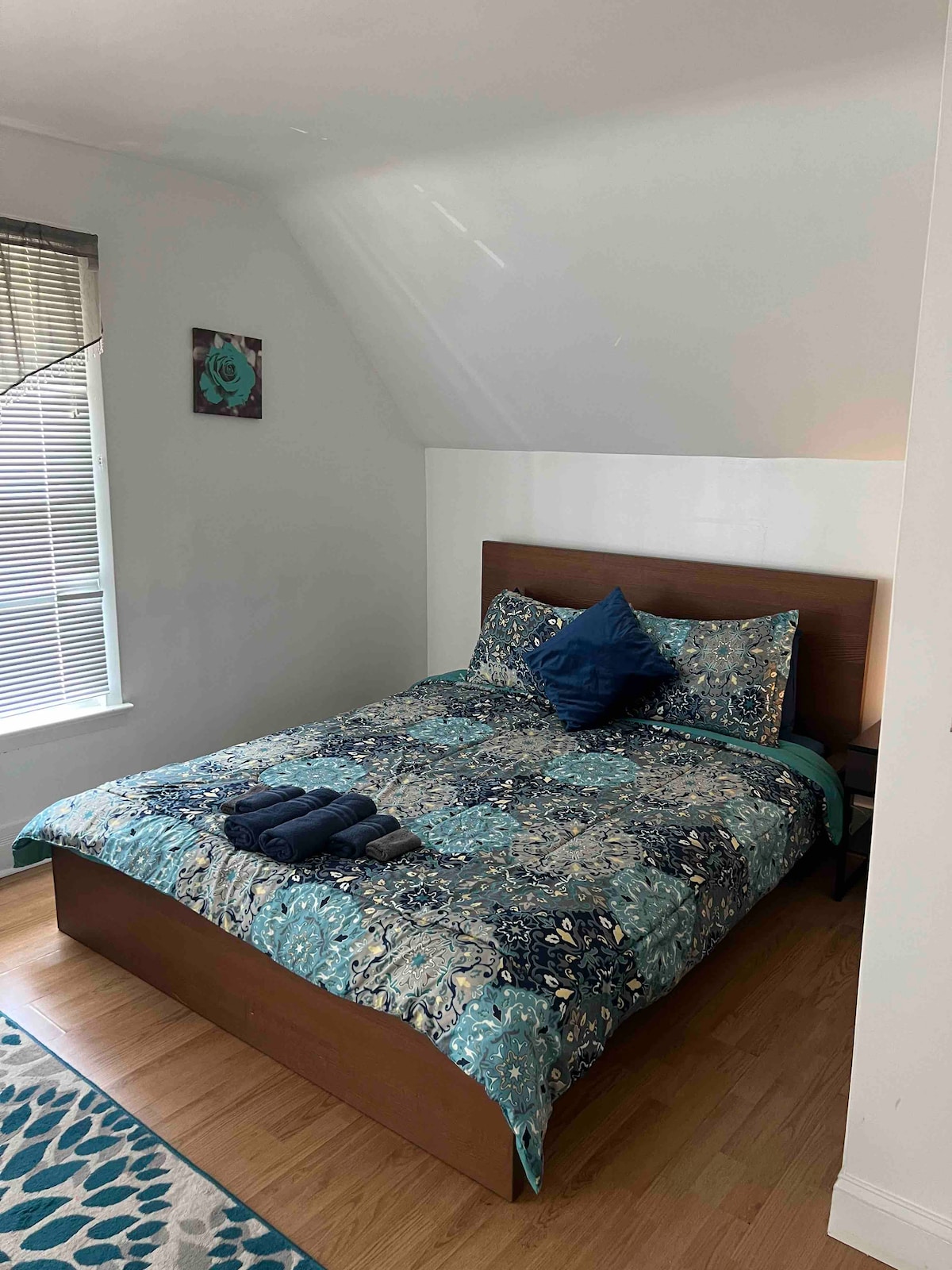 Este espacio incluye un dormitorio principal y un dormitorio más pequeño en el piso superior de una casa victoriana bellamente restaurada. Hay un baño privado para el uso personal de los huéspedes al final del pasillo. Hay una entrada separada en el segundo piso para que los huéspedes disfruten de total privacidad en el tercer piso. La casa se encuentra justo detrás de la estación Journal Square PATH. Está a 7-10 minutos caminando de la casa a la estación. Los huéspedes se encuentran a solo tres paradas del World Trade Center de Nueva York.