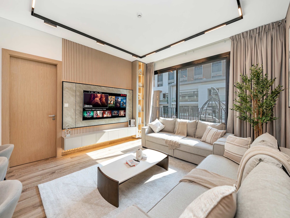 Te damos la bienvenida a nuestro elegante departamento de 3 dormitorios en JVC, Dubái. Con una decoración moderna y acabados de alta gama, ofrece una amplia sala de estar, una cocina totalmente equipada y un enorme balcón de 120 pies cuadrados, un lugar ideal para tomar un café por la mañana o relajarse por la noche. Disfruta de servicios de 5 estrellas, como un gimnasio de última generación, una cancha de pádel y una sala de cine privada, ideales tanto para relajarse como para hacer negocios. Disfruta de lo mejor de Dubái en un espacio que combina comodidad y lujo. ¡Tu hogar perfecto lejos de casa!