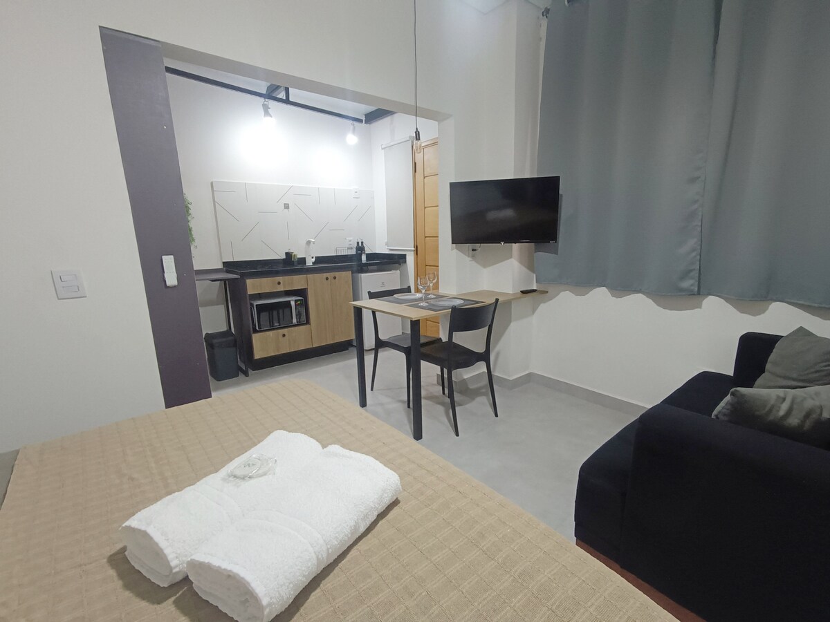Studio privativo, aconchegante e funcional, pensada para quem busca conforto, praticidade e excelente custo-benefício. O espaço conta com quarto aconchegante, cozinha equipada e banheiro moderno integrados. Ideal para quem busca privacidade e conveniência em um ambiente acolhedor. Localizada em bairro seguro, com fácil acesso e tudo por perto, é a escolha ideal para quem valoriza conforto, organização e autonomia durante a estadia.