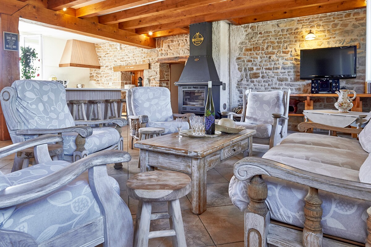 Relájate en esta tranquila y elegante casa situada en el corazón de las colinas frente a Chateau-Chalon en el pueblo de Voiteur. Construida íntegramente por nuestras propias manos, Le Chaleureux es una casa con estructura de madera diseñada durante un período de varios meses para ofrecerte un hogar que es como nosotros, uno en el que te sentirás como en casa y disfrutarás de nuestra hermosa región al máximo. 🏠 Nuestros otros alojamientos: >Le Cocon. Gîtes Chez Morgane & Thomas > Domaine GUIET