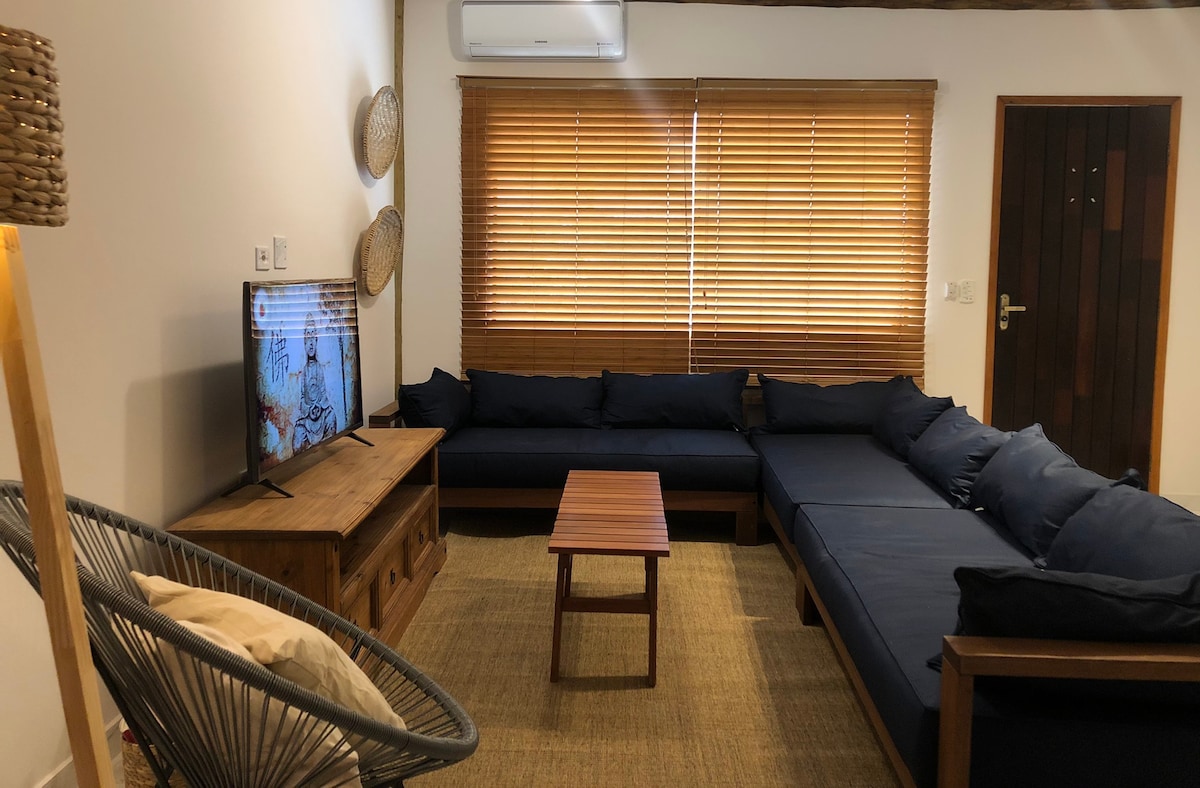 CHARME Y COMODIDAD PARA PAREJAS CHECK-OUT LOS DOMINGOS A LAS 17:00 p. m. El Blu es un encantador pueblo con seis hermosos chalets, ubicado a 150 metros de la playa de Portinho y a 700 metros de la playa de Feiticeira. Enmarcado por el Bosque Atlántico y un hermoso paisaje, se encuentra en una calle plana y acera. Hermosamente decorado, el D Chalet ofrece toda la comodidad para las parejas en un viaje inolvidable.