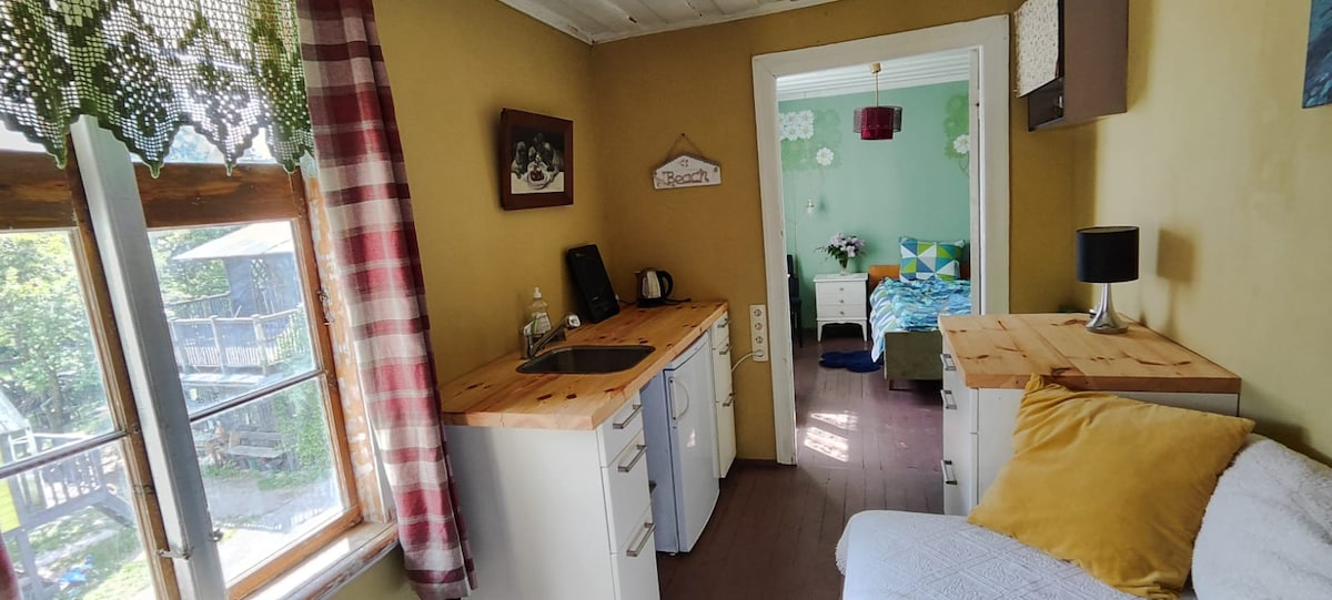 Un lugar acogedor con todo lo que necesites. Lugar rodeado de pinos y río, pero a solo unos minutos de la ciudad. Puedes utilizar nuestro jacuzzi por un cargo adicional: 50 EUR/día +20 EUR cada día siguiente. Ofrecemos una variedad de cosas que hacer: bicicletas, remo, catamarán, paseos en yate y barco, diversión acuática con esquís y colchonetas de goma, motos acuáticas y otras por un cargo adicional. Ofrecemos alquiler de motos y coches, si es necesario. También puedes utilizar nuestros juegos, rompecabezas, voleibol, bádminton, etc. que tenemos de forma gratuita.