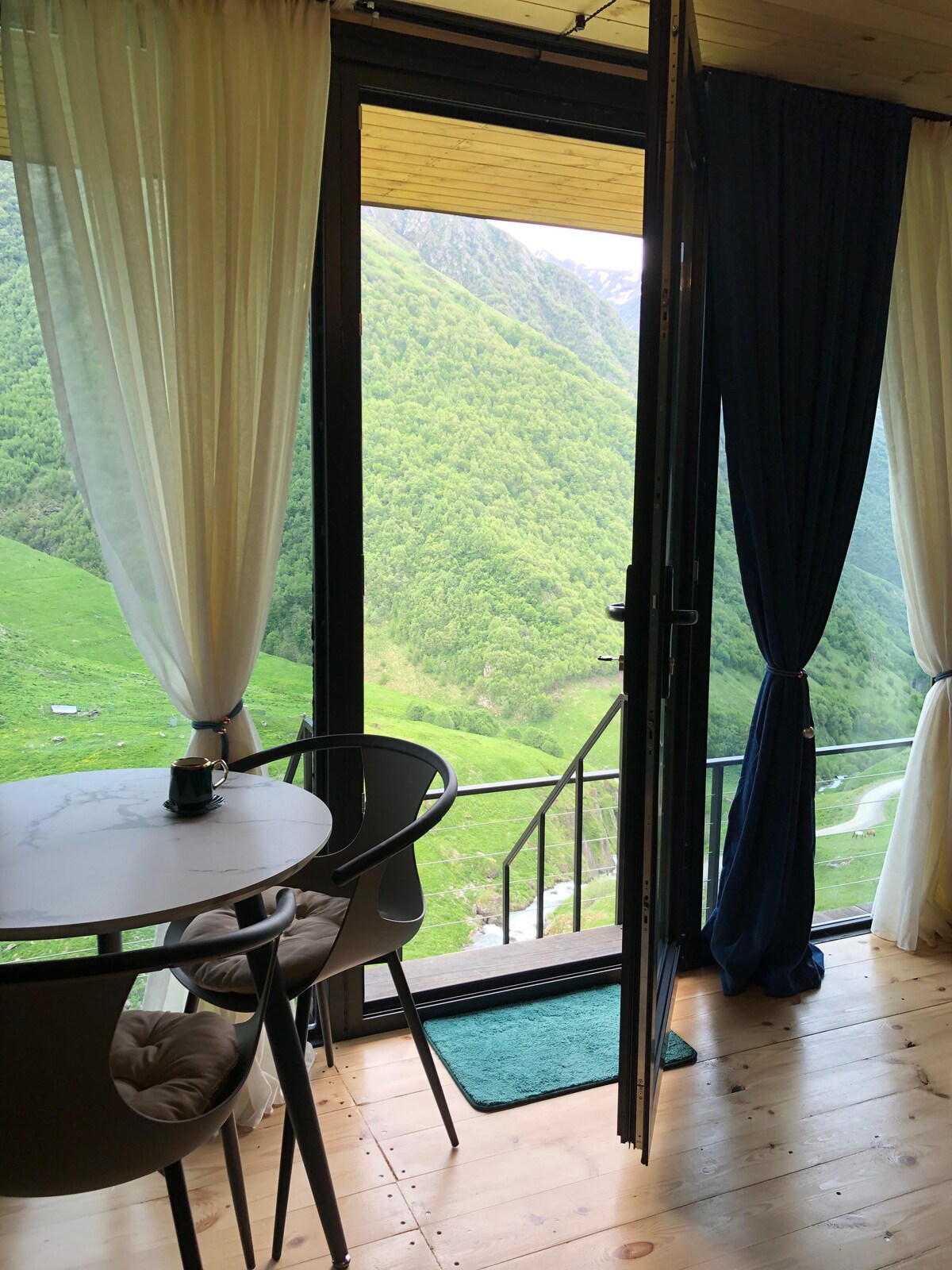 Hola, querido huésped, me gustaría informarte de que nuestra casa de madera es de nueva apertura, respetuosa con el medio ambiente y fresca, y está situada cerca del centro de Stepantsminda. La casa tiene las mejores vistas, nuestros huéspedes pueden disfrutar de las increíbles vistas de la Iglesia de la Trinidad de Guergueti y el monte Kazbegi. Lo pasarás genial en este tranquilo alojamiento en el centro. Nuestros huéspedes tendrán un entorno increíble para relajarse y crear el mejor estado de ánimo. ¡De nada! ¡Te deseo unas vacaciones agradables!