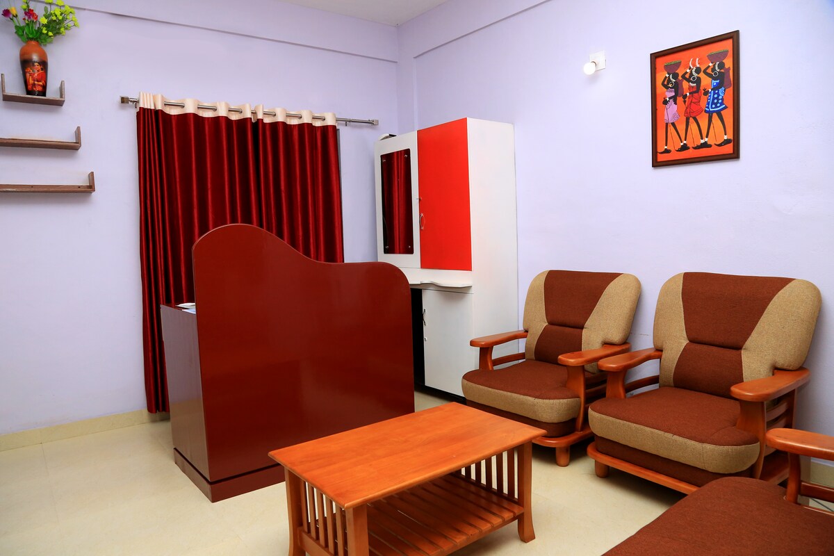 Descubre una joya escondida en el corazón de Wayanad-VGK Residency, un nuevo y lujoso apartamento con servicios a solo unos minutos del sereno lago Karlad. Diseñado para sentirse como tu propio hogar lejos de casa, nuestro apartamento de lujo de un dormitorio ofrece la combinación perfecta de comodidad, elegancia y tranquilidad de la naturaleza.