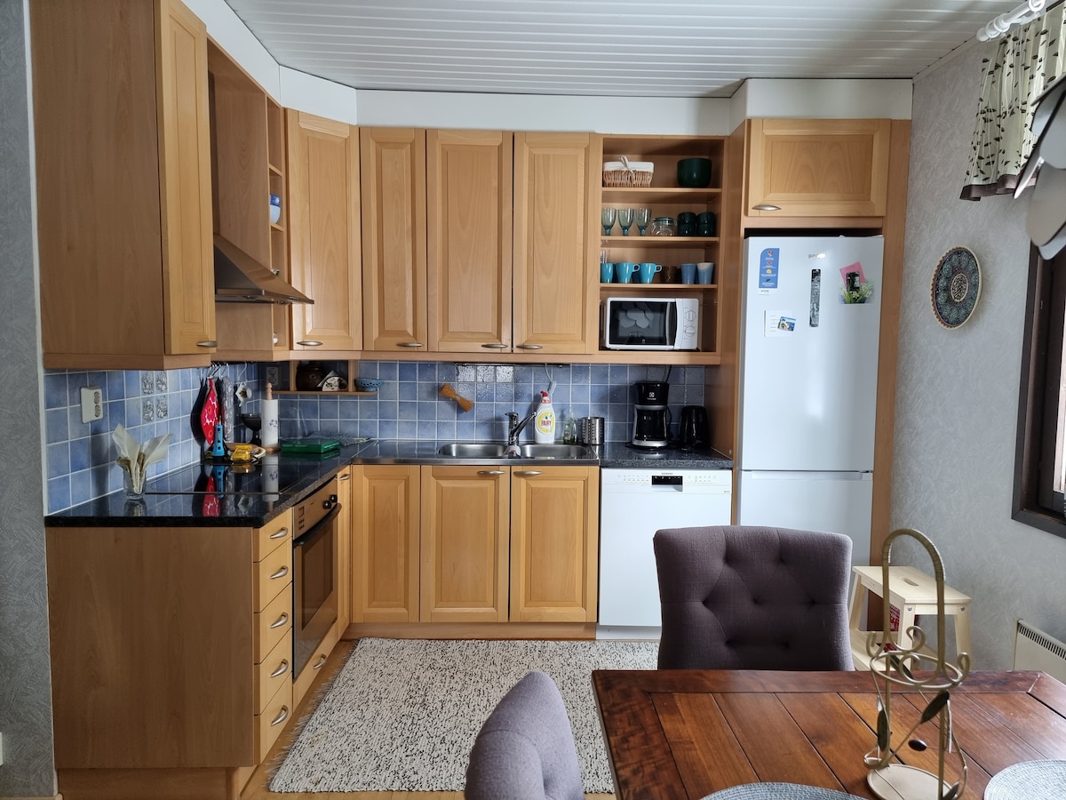 Apartamento acogedor y limpio con entrada privada. Cocina totalmente equipada. Se puede calentar la sauna a diario, refrescarse en la terraza protegida, hacer barbacoas (a gas) y hay una chimenea. Camas hechas en los dormitorios (160 cm, 120 cm). Sofá cama en el salón (140 cm). Camas de viaje para niños pequeños. Se admiten mascotas (recuerde informar al hacer la reserva). La ropa de cama, las toallas y la limpieza final están incluidas en el precio. El apartamento está a unos tres kilómetros del centro de Kajaani en dirección al aeropuerto.