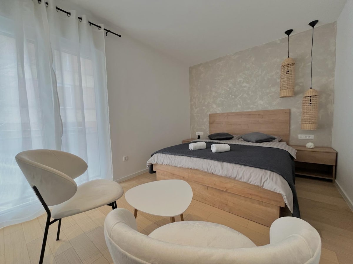 Nuestro nuevo apartamento URBAN City *BEACH* está a solo 5 minutos a pie de la playa de Kolovare, a 10 minutos de las antiguas murallas de la ciudad y a 3 minutos de la estación principal de autobuses. Todas las tiendas y mercados están a la vuelta de la esquina. APARCAMIENTO gratuito, 2 aires acondicionados, calefacción por suelo radiante, 1 dormitorio, 1 balcón, una gran sala de estar y cocina totalmente equipada (lavavajillas), baño con ducha a ras de suelo (lavadora y secadora). Perfecto para una pareja feliz o 2 amigos. Hermoso diseño, mucha luz, espacio y comodidad. ¡RESERVA AHORA!