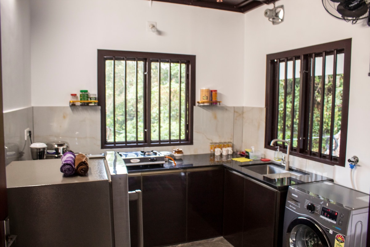 Disfruta del encantador entorno de este romántico lugar en la naturaleza. ¡Bienvenido a tu serena escapada en los Ghats occidentales! Nuestra encantadora pequeña casa, enclavada en las montañas de Kallyanathandu, ofrece un refugio inolvidable con unas vistas impresionantes a las montañas y a un lago resplandeciente. Adéntrate en un mundo de tranquilidad donde la naturaleza te rodea. Nuestra propiedad es un remanso de exuberante vegetación, salpicada de plantas de café y una variedad de árboles frutales. El lugar perfecto para recargar con la belleza natural de kerala