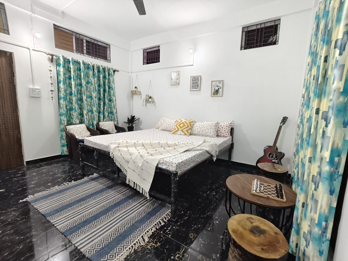 Ubicada en el sereno entorno del Parque Nacional Kaziranga, nuestra propiedad ofrece un refugio perfecto para los amantes de la naturaleza y aquellos que buscan una escapada pacífica. Sumérgete en la belleza de la naturaleza mientras disfrutas de las comodidades de tu hogar. Disfruta de comidas hogareñas preparadas con amor y, si lo prefieres, aprovecha la pequeña cocina pequeña para preparar tus propias comidas. (1 cama tamaño king disponible para 2 personas + 500 Rs para personas adicionales). En caso de que vengas en grupo, tenemos 4 habitaciones disponibles.