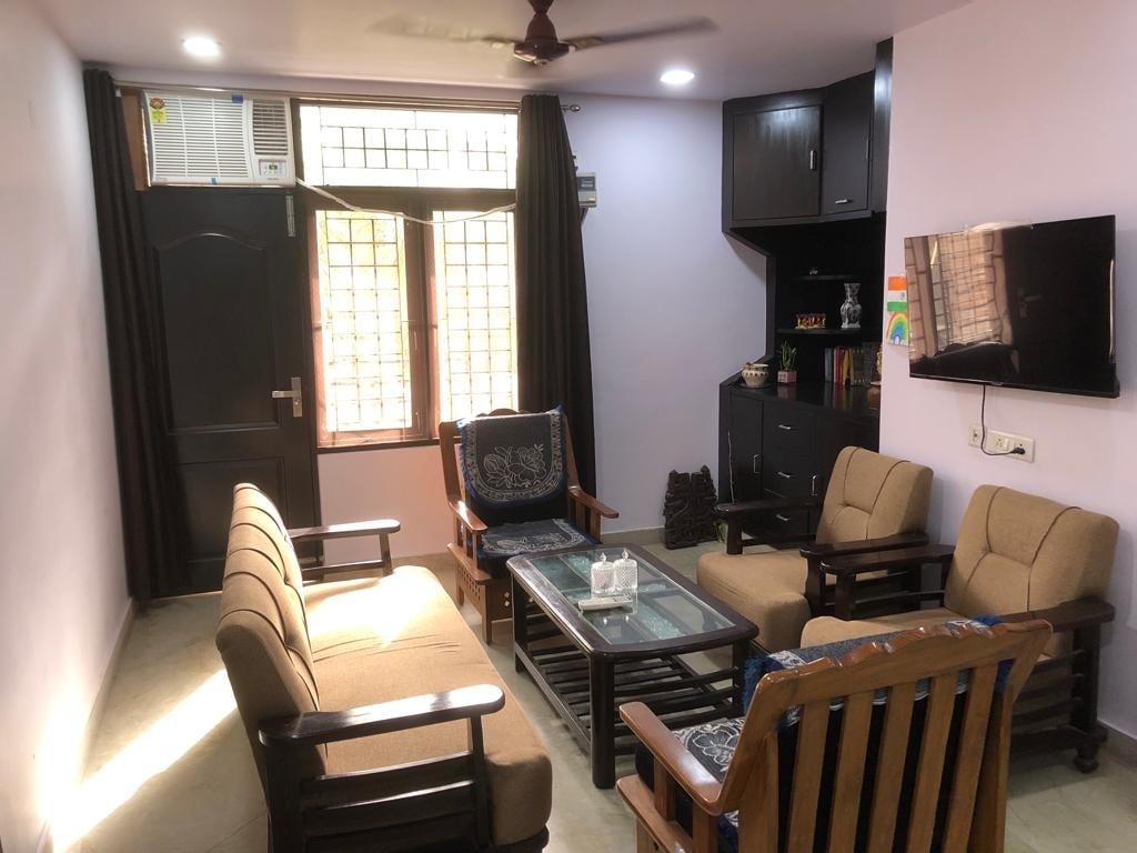 Cozy 1BHK Suite – Perfect for Peace & Comfort! Enjoy a peaceful retreat in charming 1BHK suite. The suite offers: 2 comfy double beds for restful sleep A spacious sofa for 6-8 people to relax and chat A fully-equipped kitchen with utensils, microwave, fridge, and more A refreshing bathroom with geyser & shower Safe parking for your vehicle Ideal for solo stays or up to 5, this space ensures comfort and relaxation throughout your stay. We provide Car/bike/activa on rent!