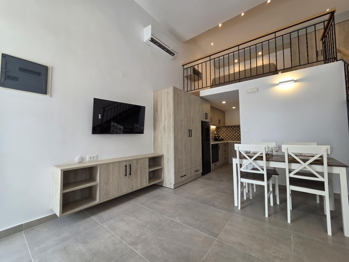 These charming houses are located in a quiet corner of Pigadia, within walking distance of the harbor, beach, shops, and tavernas. Blending modern comfort with Karpathian style, they are perfect for couples, families with young children, or friends traveling together who want a stylish and convenient base in the heart of Karpathos. Each house is an open-plan home featuring a loft-style bedroom, a sofa bed for two guests, a bathroom with a washing machine, and a fully equipped kitchen. Outside,