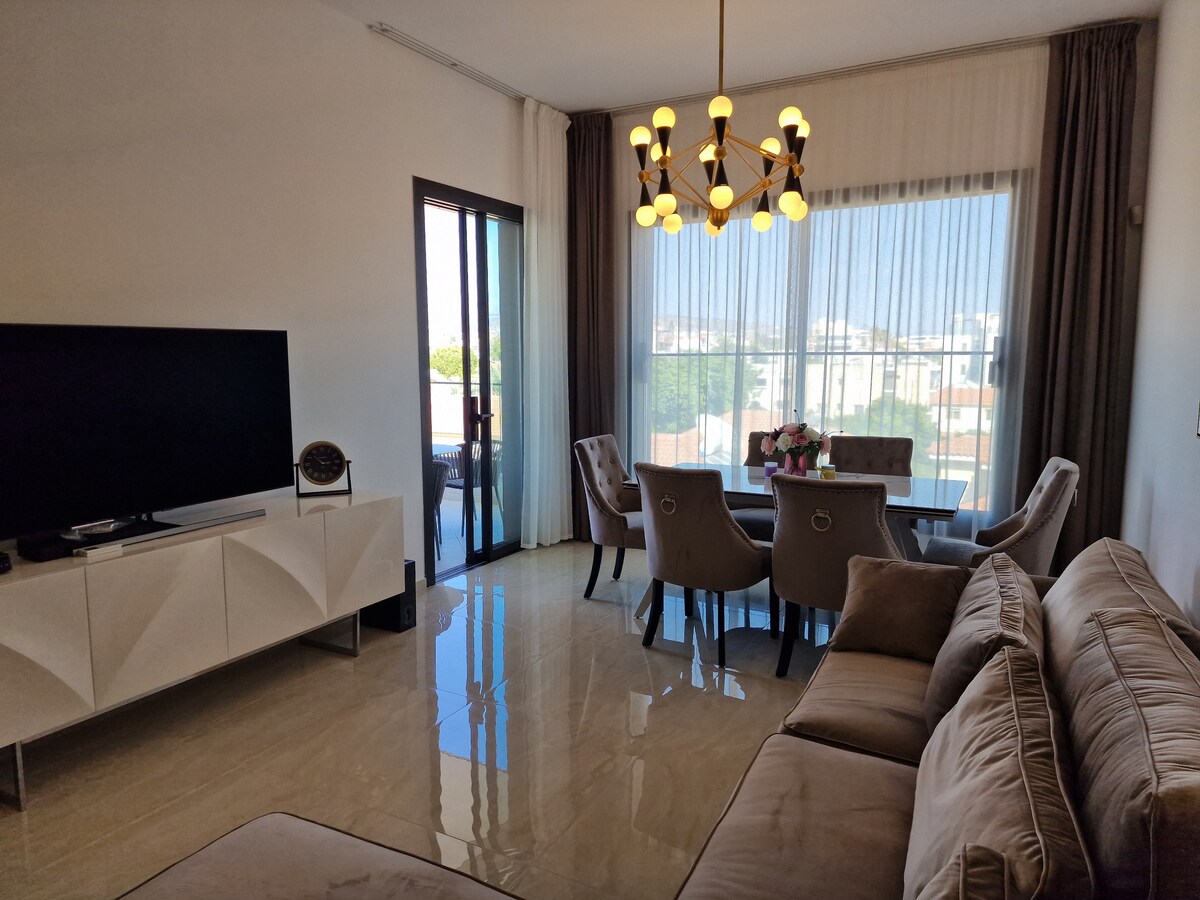 Escápate a un lujoso departamento de 3 dormitorios en Ypsonas, Limassol. Este moderno refugio cuenta con una sala de estar de diseño abierto, un gran balcón y una cocina totalmente equipada. Con 3 dormitorios (principal con baño, cama queen, 2 individuales), es perfecto para familias o grupos de hasta 6 personas. Disfruta de wifi de alta velocidad, Netflix y 2 lugares de estacionamiento gratuitos. Una base tranquila para explorar las playas y el centro de la ciudad de Limassol, a pocos kilómetros en auto.