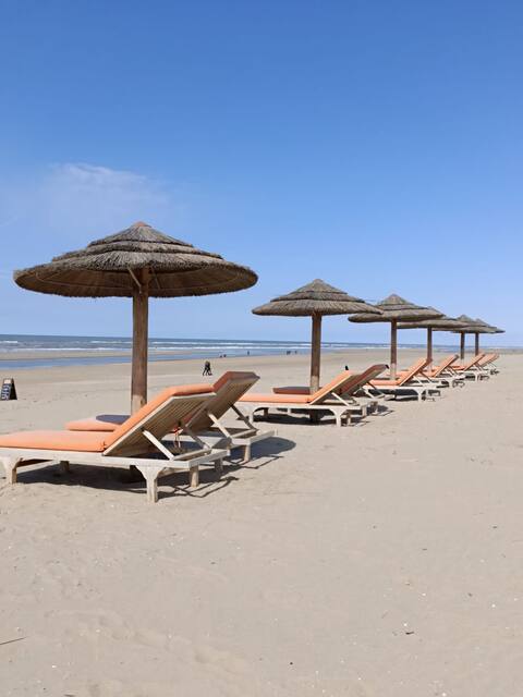 Nuestro alojamiento está elegantemente amueblado y se siente como una verdadera casa de vacaciones. El ambiente playero y bohemio te da inmediatamente una sensación de sol, mar y vida relajada. Es accesible a través de la zona trasera de nuestra casa, lo que garantiza una sensación de seguridad. Cerca de la playa (200 m) con alquiler de tumbonas y escuela de surf, mar y dunas. El centro está a poca distancia a pie (500 metros) y el supermercado está a la vuelta de la esquina. Ubicación céntrica cerca de las principales ciudades y de fácil acceso en transporte público.