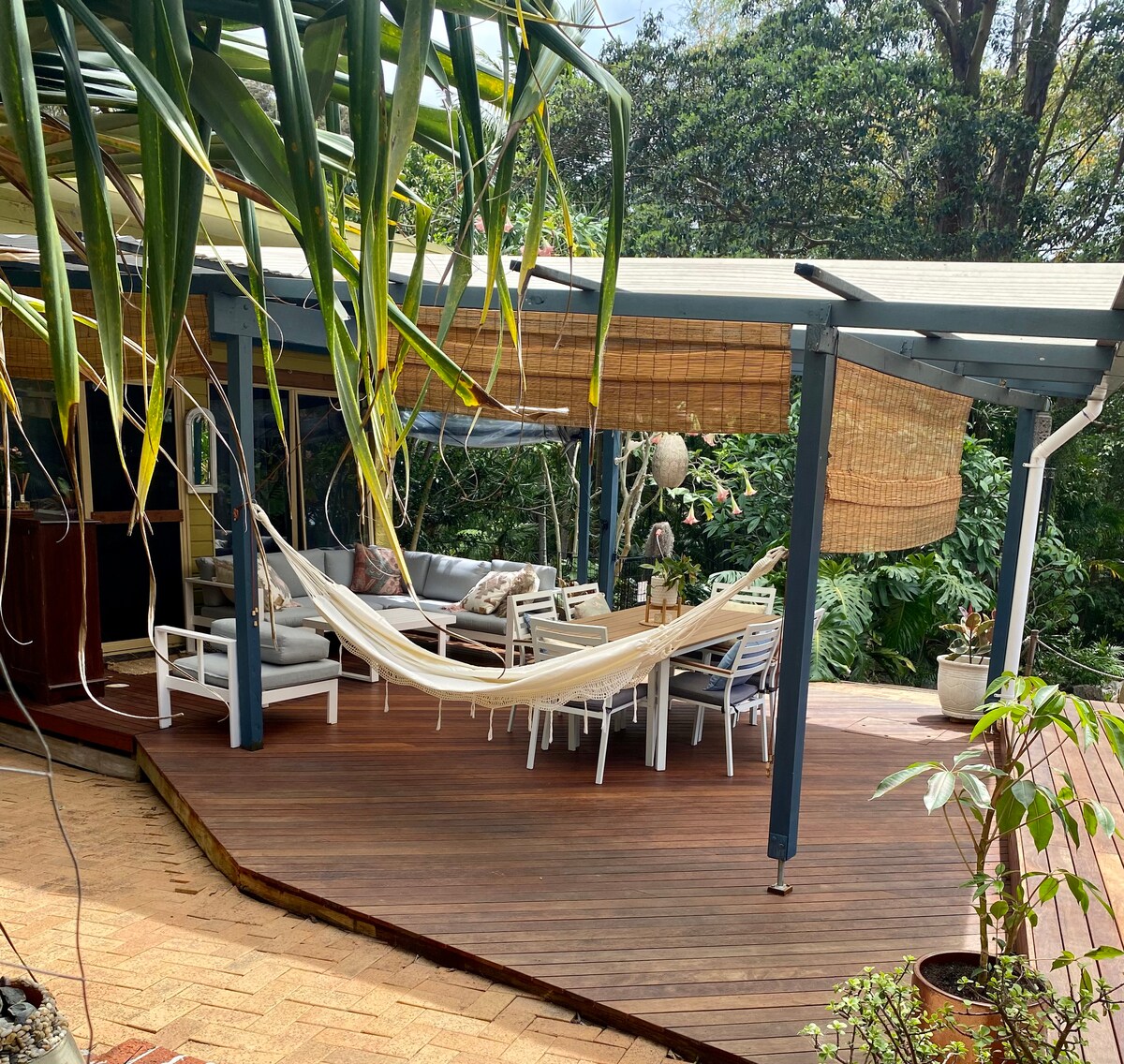 Te damos la bienvenida a nuestro espacioso refugio junto al río, donde la comodidad moderna se encuentra con la belleza natural. Esta casa de 4 dormitorios y 2 baños está justo al lado de la autopista del Pacífico, convenientemente ubicada a poca distancia de la ciudad de Macksville. Con un interior espacioso y un gran patio/terraza, es perfecto para cualquier número de huéspedes. Disfruta de la vista del río o da un paseo por el próspero jardín hasta la orilla del río, donde te espera el kayak (incluido) o la pesca.