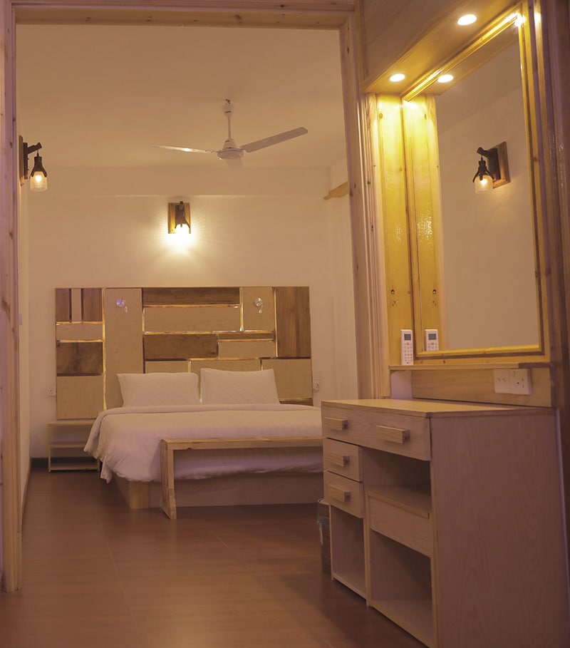 Fiya Inn is a peaceful 5-room guest house in the Maldives, offering modern rooms with private bathrooms and a mix of king, queen, and twin beds. Guests can relax in the shared lobby and enjoy the beautiful surroundings of clear waters and sandy beaches. Perfect for couples, families, and small groups, Fiya Inn provides a tranquil island experience with warm Maldivian hospitality, making it an ideal getaway for those seeking relaxation and comfort in a stunning tropical setting.