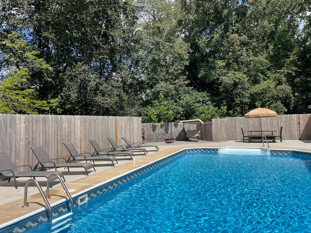 Espacio sereno enclavado en el bosque, con vistas al agua. Tienes tu propia casa de campo privada en nuestra propiedad de 10 acres para ver las puestas de sol y disfrutar de la naturaleza que te rodea. ¡Verás ciervos, conejitos, ranas, tortugas, pájaros y mucho más desde el precioso porche delantero! Como enfermera, puedo garantizar que nuestro espacio siempre se ha limpiado y desinfectado con los más altos estándares, con el uso regular de una luz de ozono. Échale un vistazo en Instagram para más felicidad: theblissfulretreat y FB: theblissfulretreatrockhall