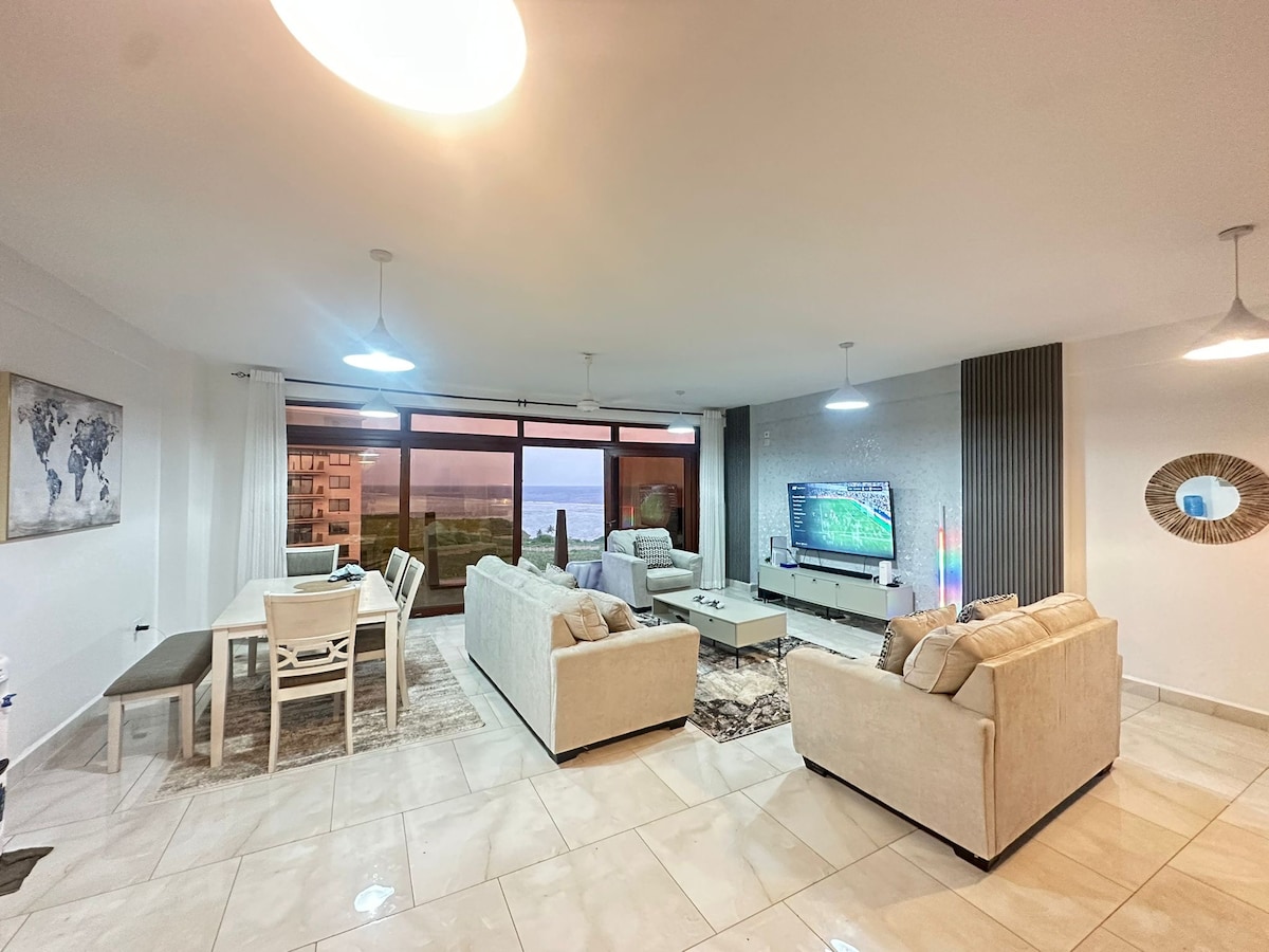 LONGTERM/ SHORT TERM STAYS .beachfront apartment offers your luxury on a budget.The kitchen is fully equipped with utensils and appliances. Comfortable sofa that can fit 9 people . Master bedroom has a king bed and a babycot, guest room has 2 beds medium size . The property has a restaurant that offers fresh seafood and oven baked pizza with a big swimming pool and ocean front with beach beds. N/B 10% discount offer on all stays over 10 days