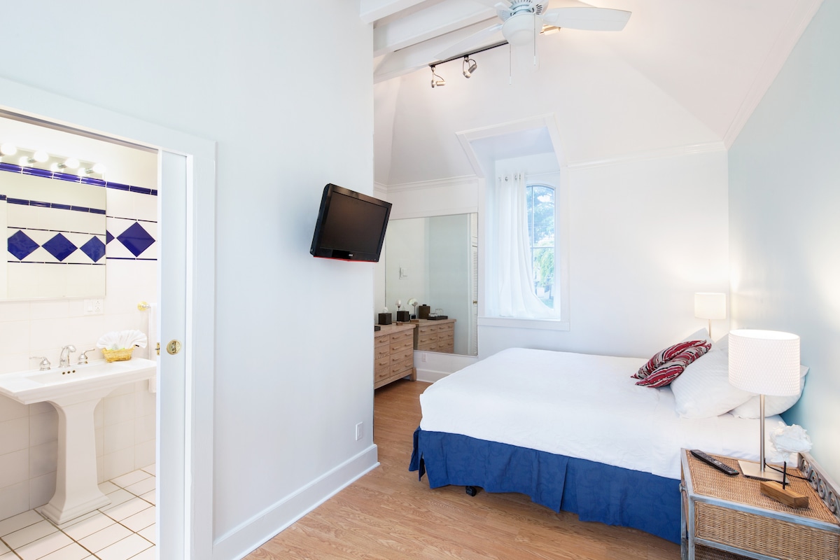 Hotel boutique solo para adultos (mayores de 21 años). Experimenta la grandeza de su majestuosa casa victoriana, cuidadosamente actualizada y convertida con amor en un hotel boutique. Estamos ubicados en el corazón del casco antiguo, a solo media manzana de Duval Street. Esta hermosa habitación está justo al lado de nuestra revitalizante piscina tratada con agua salada. Separada de la casa principal, esta habitación tipo cabaña ofrece a los huéspedes una escapada tropical más privada. Esta habitación cuenta con una cama tamaño king con la parte superior acolchada, baño privado y sala de estar.